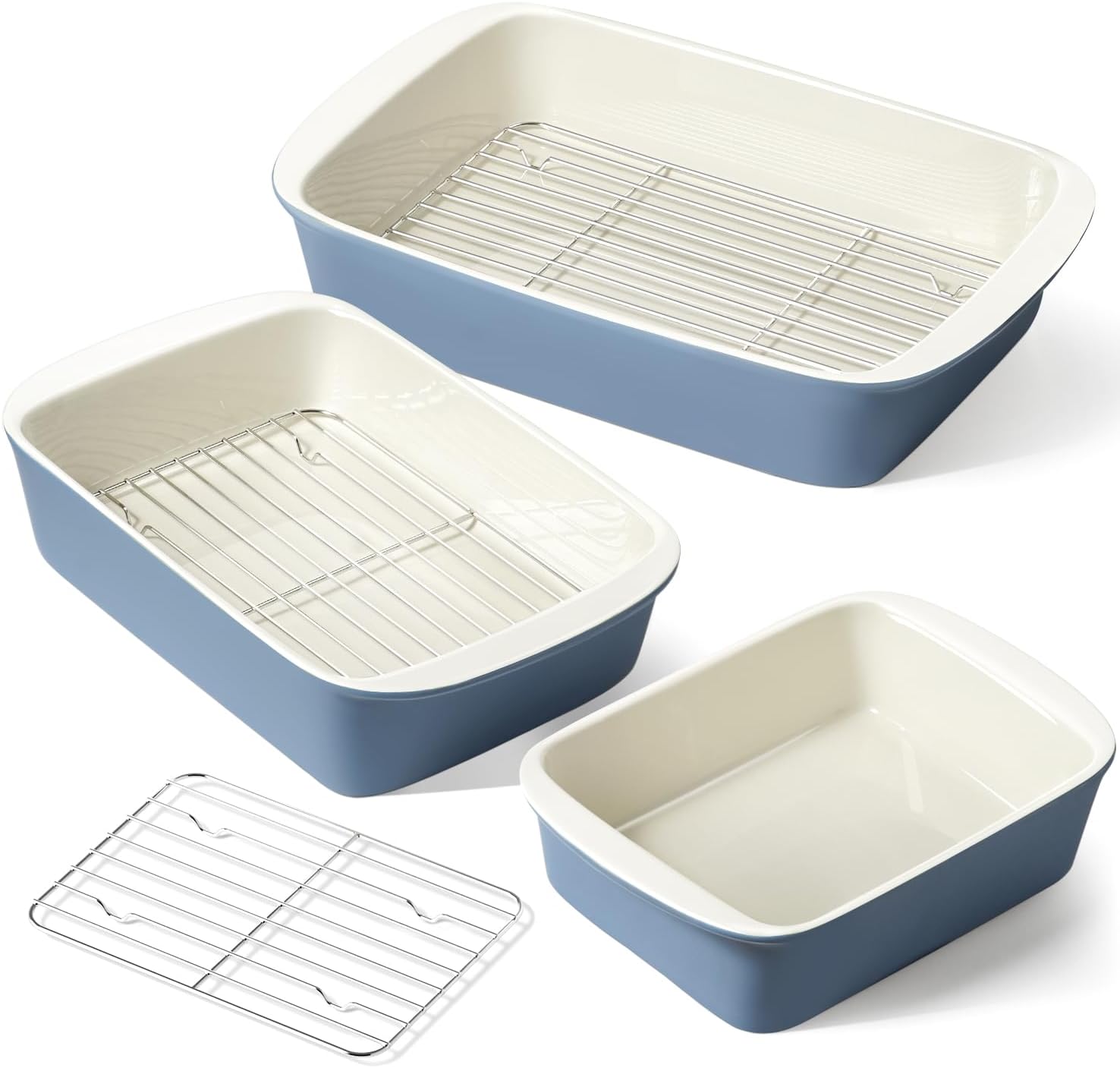 - Drip Racks for Healthier, Crispier Cooking: Each baking dish includes a matching oil-drip rack, perfect for roasting meats, bacon, and more. The racks help reduce excess grease, allowing you to cook delicious, healthier, and crispier meals