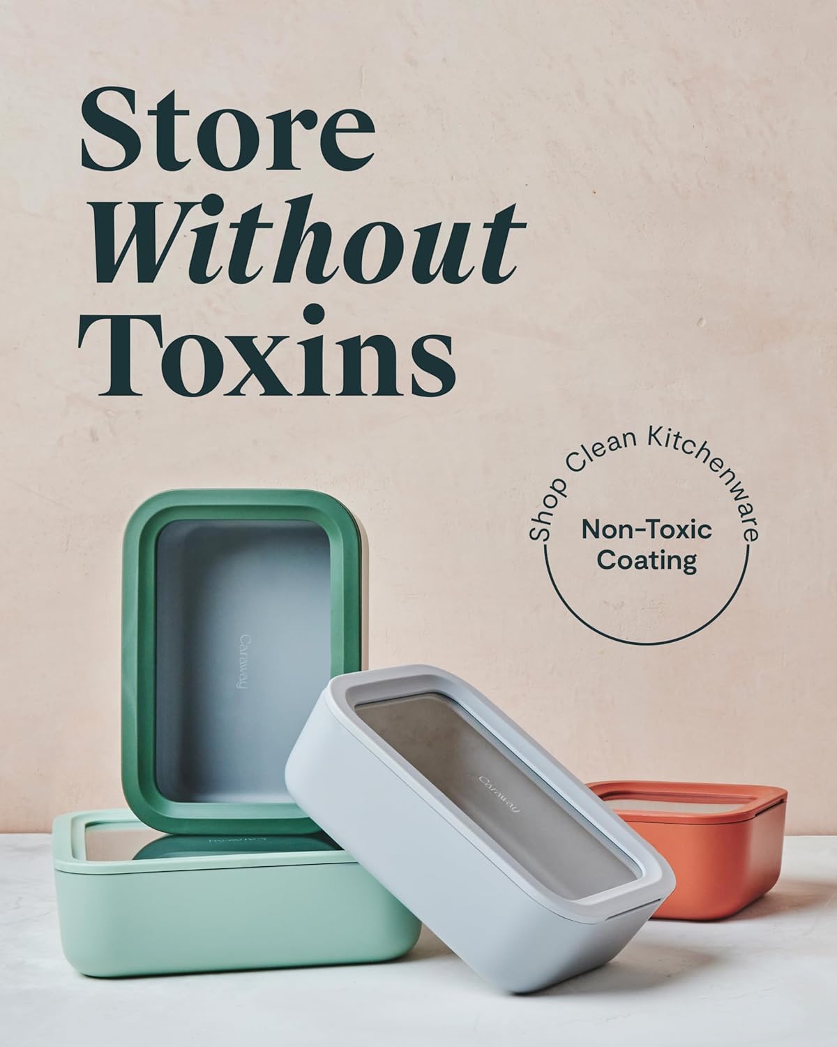 - KEEP YOUR FOOD FRESH: Look forward to leftovers with Caraway’s easy-to-store, non-toxic food storage containers. This set looks great and most importantly keeps your food extra fresh and organized.