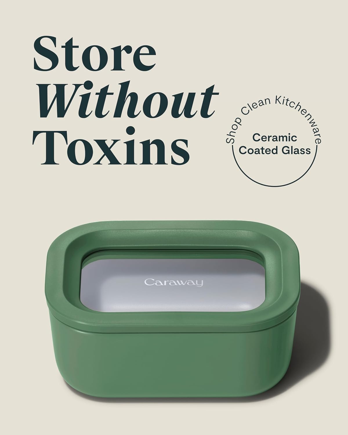 Caraway 6pc Glass Food Storage Set - 2.6 Cup Storage Containers For Food (6) - Non-Toxic Ceramic-Coated Glass - Air Release Technology - Compact & Stackable Design - Sage