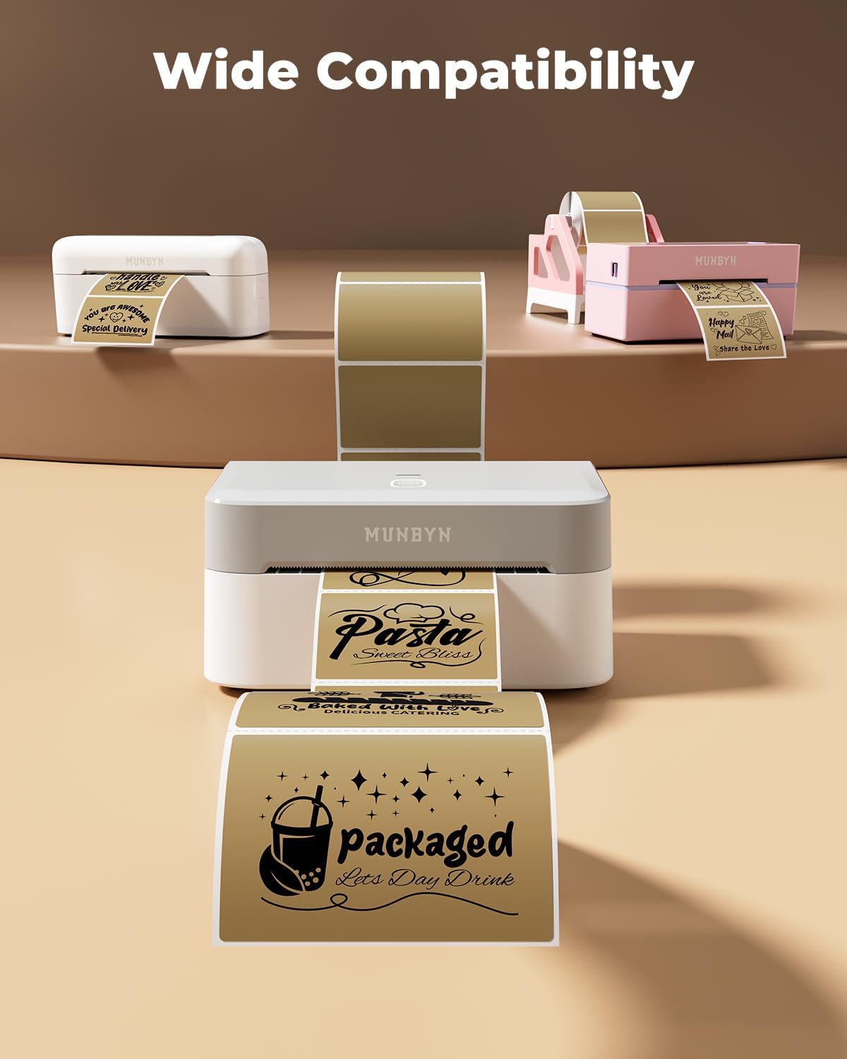 MUNBYN 3x2 Inch Brown Thermal Labels, Thermal Sticker Labels for Price, Barcode, Mailing, Name, 500 Sheets/1 Roll