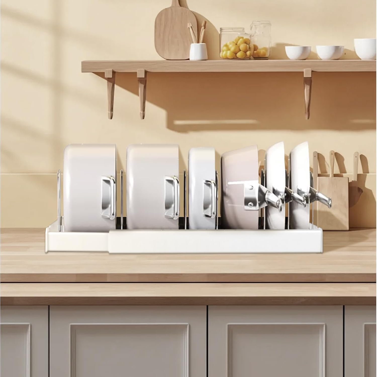 - 10 Adjustable Compartments – Easily customize each slot to store pots, pans, lids, bakeware, or cutting boards in a way that suits your cookware collection