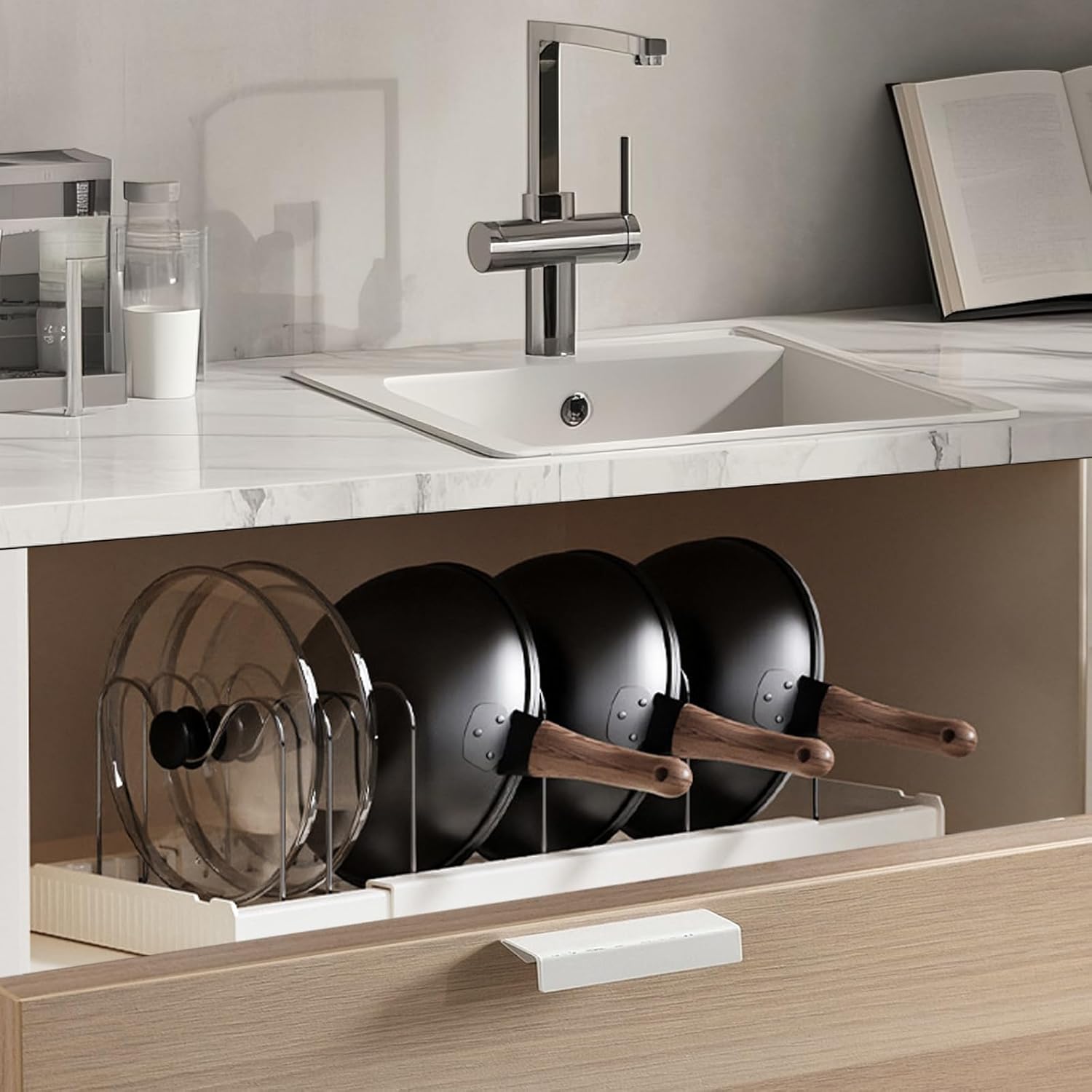 - Versatile Kitchen Storage – Ideal as a pots and pans organizer under cabinet, pot organizers inside cabinet, or on the countertop for quick access while cooking