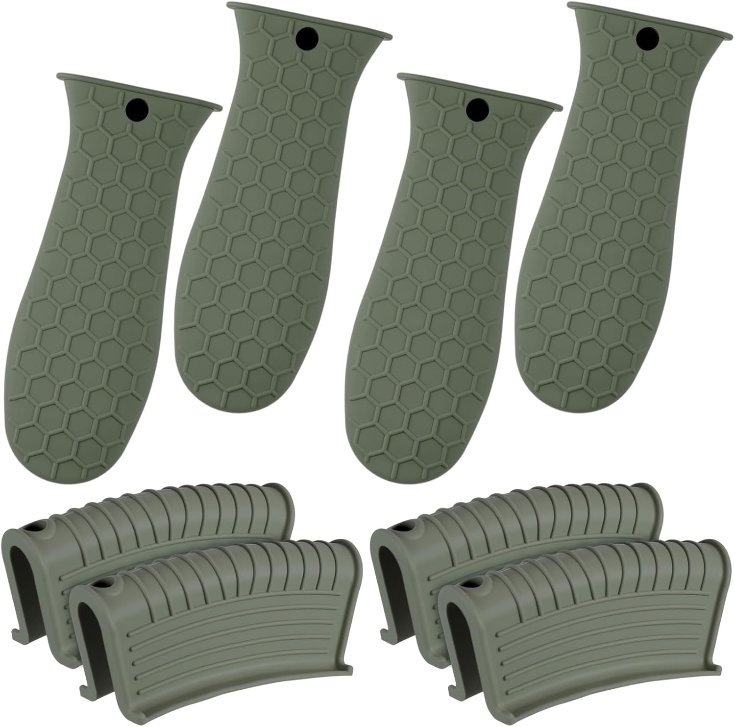 - Package Content: there are 4 pieces of silicone hot handle holders that come in dark color, 4 pieces of silicone assist handle holders available in dark color, enough quantity and classic style enough for your daily use, can be changed and shared, and easy to find; Suitable for using at home, travel or camping, nice gift for Mother's day, birthday, holidays, housewarming, chef and hostess