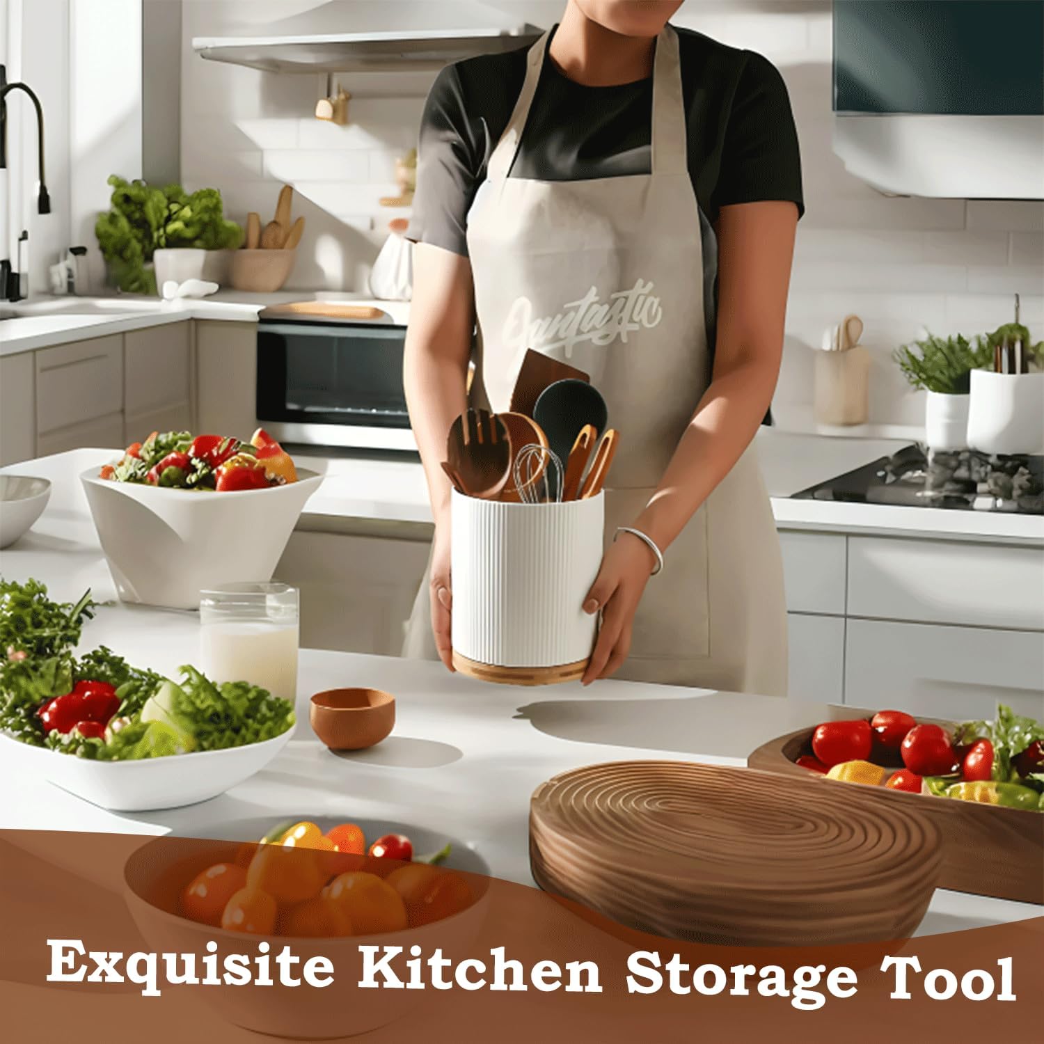 - 𝐏𝐫𝐞𝐦𝐢𝐮𝐦 𝐂𝐞𝐫𝐚𝐦𝐢𝐜 & 𝐒𝐭𝐚𝐛𝐢𝐥𝐢𝐭𝐲: Made with heavy duty ceramic, this ceramic kitchen utensil holder ensures durability and prevents tipping The detachable wooden base provides stability and smooth rotation, keeping your countertop safe and organized. A dependable holder for kitchen utensils that’s built to last.