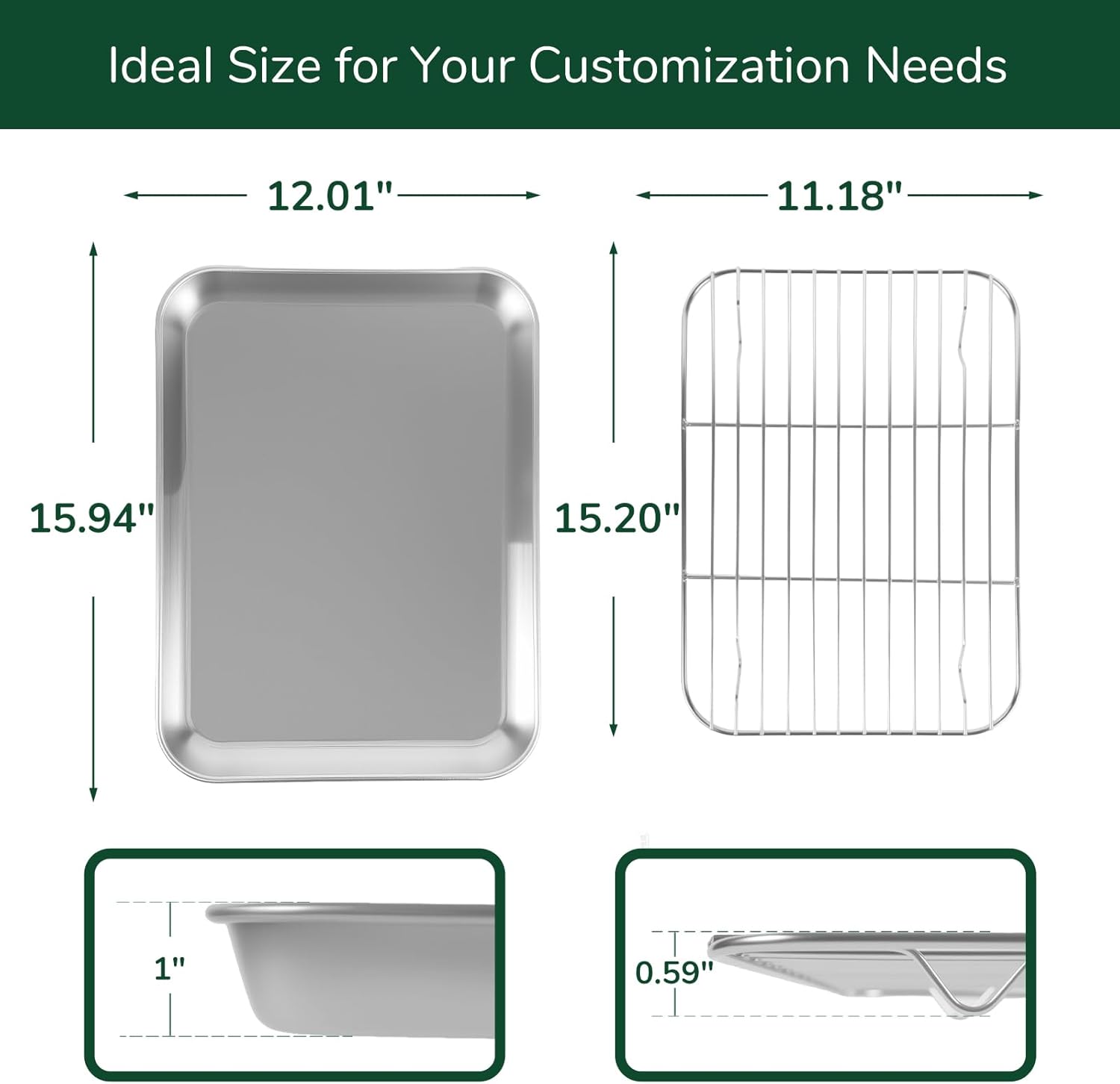 18/0 Stainless Steel Baking Sheet with Cooling Rack, 15.9 Inch Oven-Safe Non-Toxic Cookie Sheets for Baking, Coating Free & Rust Resistant for Healthy Family Baking, Easy to Clean, Heavy Duty