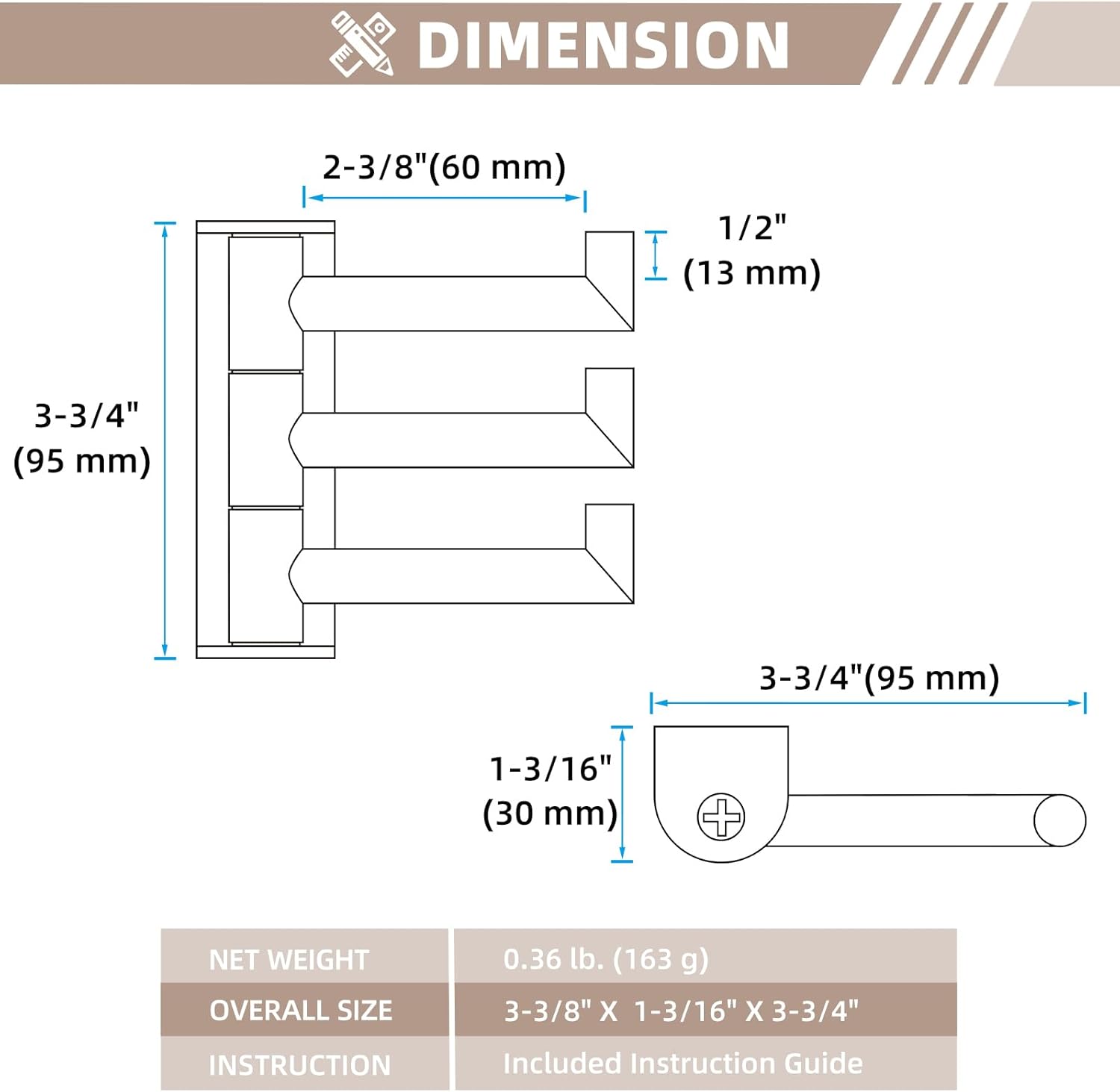 Suyar Towel Hook for Bathroom, SUS 304 Stainless Steel Swivel Robe Holder with 3 Arms, Wall Hook Brushed Nickel, 2 Pack