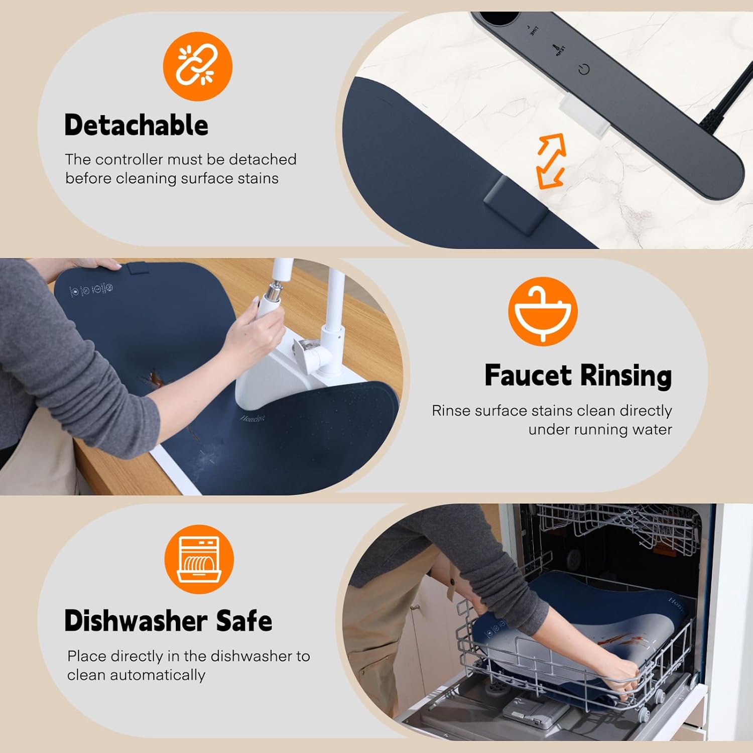 - Washable and Dishwasher-friendly: The control board and heating board of our food warming mat are detachable. Simply remove the control board, and the heating board is waterproof and washable, you can put it in the dishwasher for cleaning, spend more time enjoying your meals and less time cleaning up.
