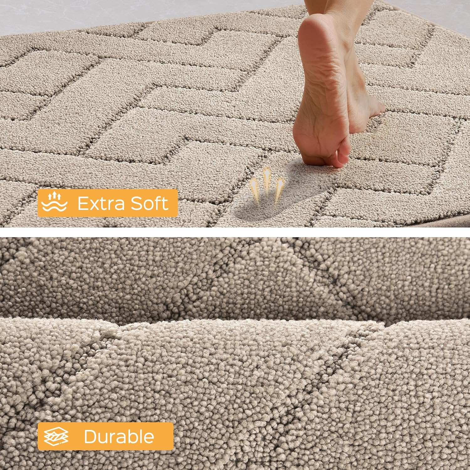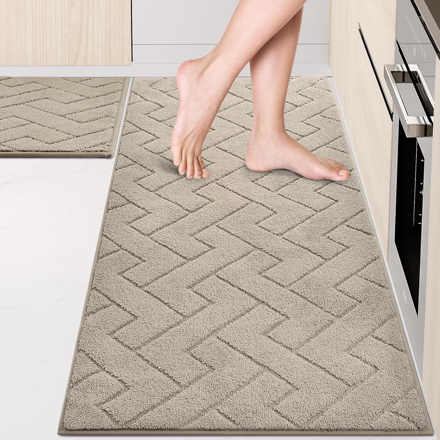 Machine Washable Kitchen Rugs Set (24" x 36"+24" x 60"), Non-Slip Kitchen Runner Rugs Mats for Floor, Absorbent Comfort Standing Mats for Kitchen, Sink and Hallway, Rolled Packaging, Taupe