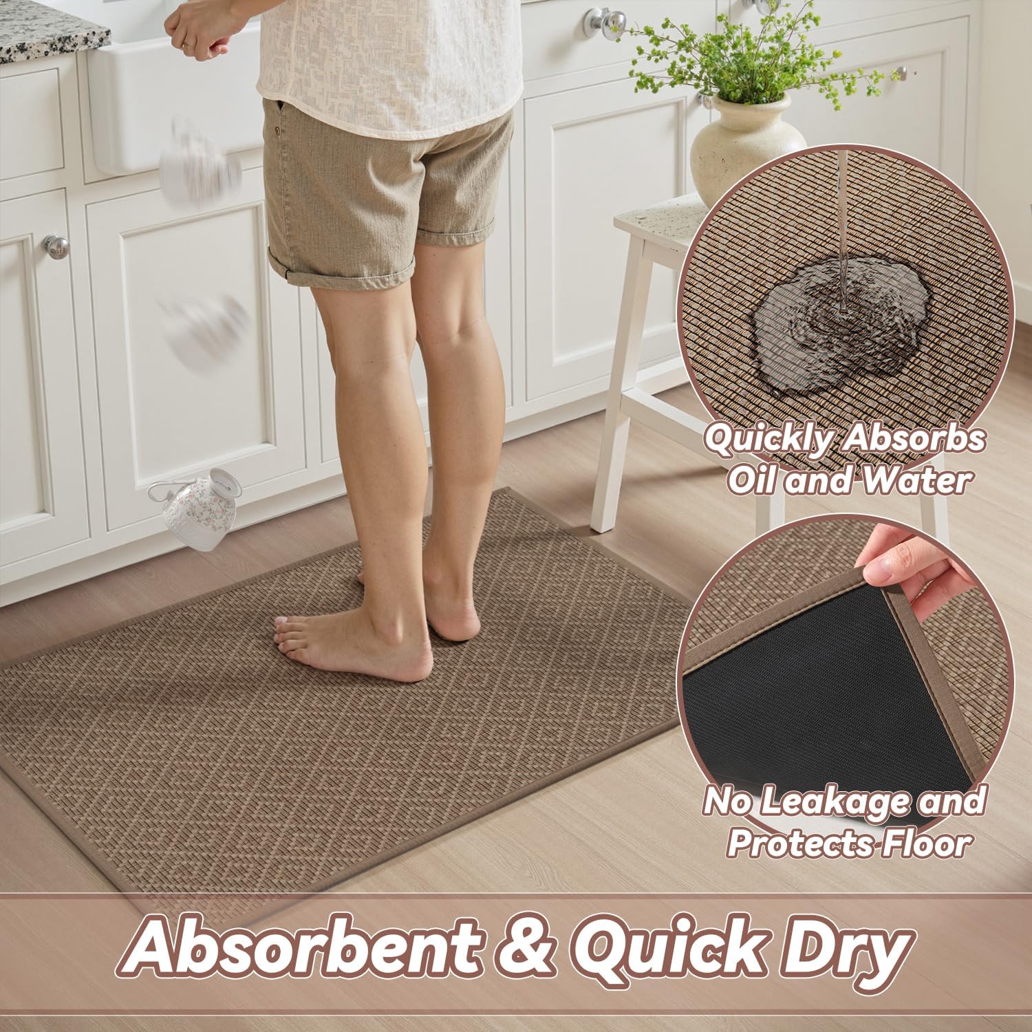 - Super Absorbent: These absorbent kitchen rugs quickly soak up spills, water drips and oil droplets, keeping your kitchen floors dry and clean. Ideal as a kitchen sink mat to protect against everyday messes in busy households.