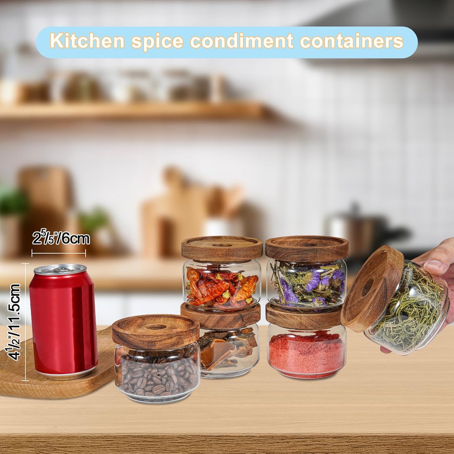 Glass Spice Jar Coffee Sugar Container Airtight Glass Jar Food Storage Canisters Bottle for Kitchen Seasoning Tea Herb Overnight Oats Bar Parfait Snacks (6 * 250ml(8.4oz))