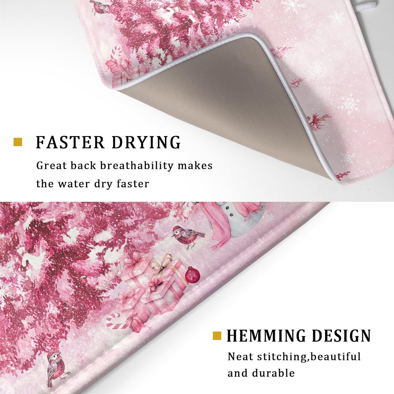 Pink Forest Dish Drying Mat Snowman Washable Drying Matt Kitchen Counter Absorbent Coffee Mat for Winter Home Decor