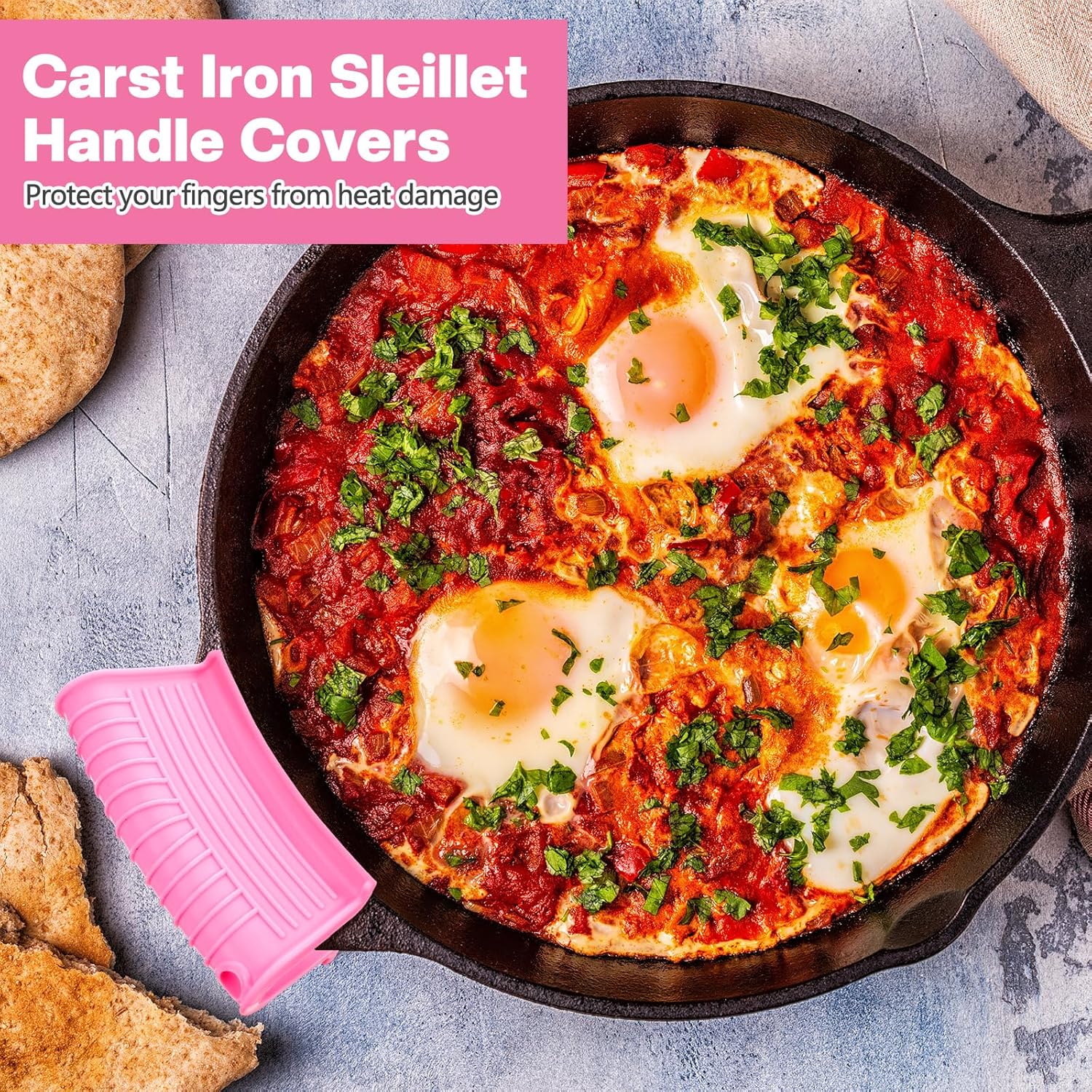 Patelai 4 Pcs Silicone Assist Hot Pan Handle Holder Pot Handle Covers for Cast Iron Skillets Holder Sleeve Nonslip Heat Resistant Pan Cover for Enameled Griddles Casserole Frying Cookware(Pink)