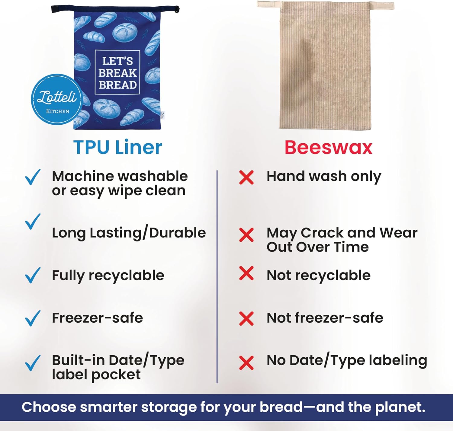 - Bread Keeper For Homemade Bread 2-bag Set: The freezer-safe, food-safe liner keeps your bread soft inside and crisp outside, whether stored in the fridge or freezer. And because it’s machine washable, it’s the sustainable way to protect your homemade bread.