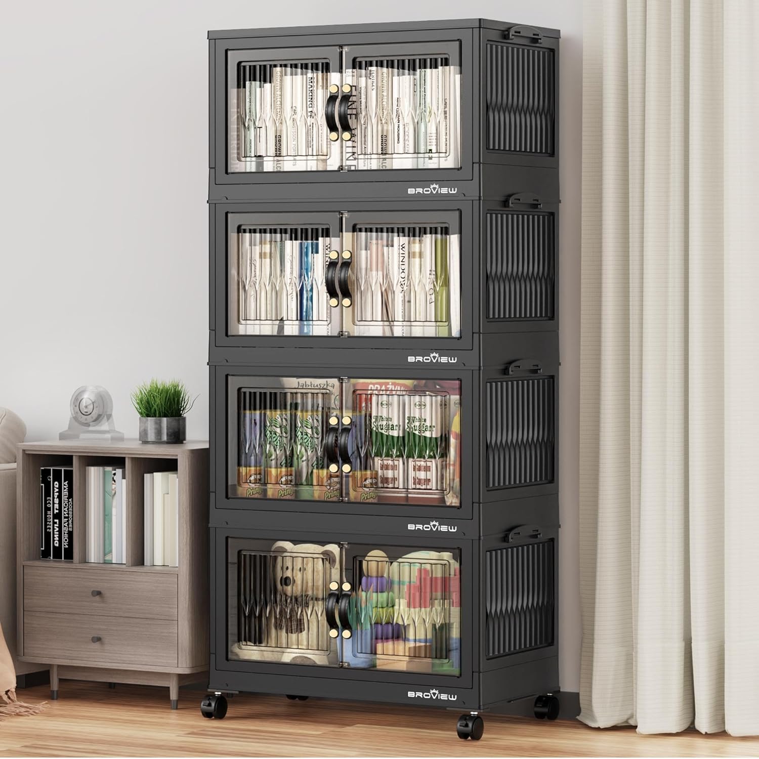 - 【5 Mins Easy Assembly & Warm Tips】The stackable storage bins open front only take 5 minutes to assemble the entire storage cabinet. Thanks to the foldable and stackable design, Broview v8 stackable storage bins can be disassembled and folded at any time when not in use. Warm Tips: Currently only 120QT black come with multi Lid, other need to be purchased separately.
