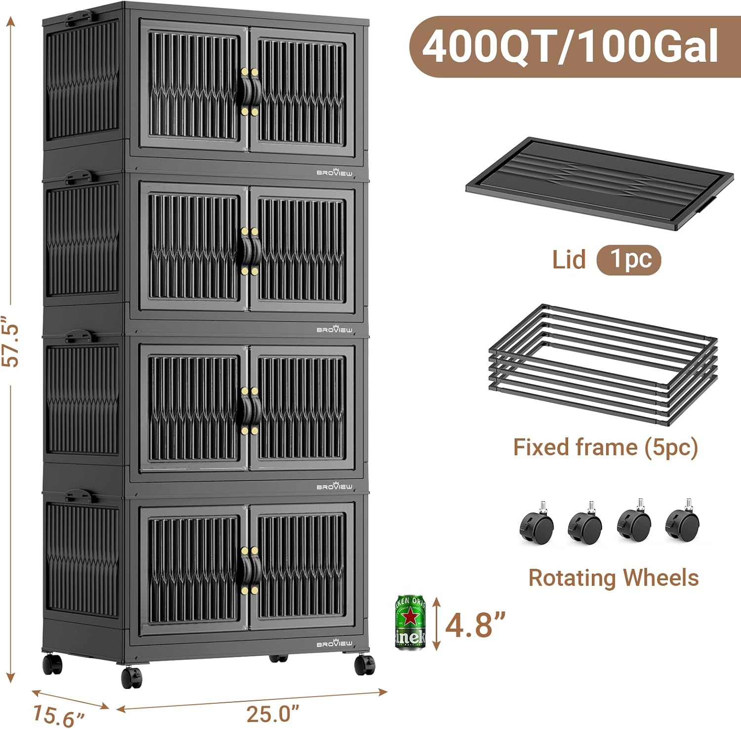 - 【5 Mins Easy Assembly & Warm Tips】The stackable storage bins open front only take 5 minutes to assemble the entire storage cabinet. Thanks to the foldable and stackable design, Broview v8 stackable storage bins can be disassembled and folded at any time when not in use. Warm Tips: Currently only 120QT black come with multi Lid, other need to be purchased separately.