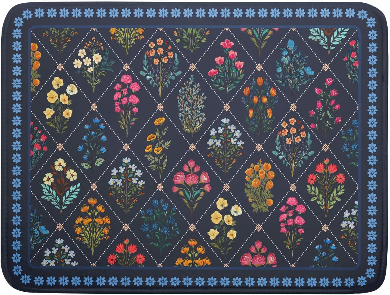 Lapis Blue Dish Drying Mat for Kitchen Counter Flowers Microfiber Absorbent Dish Draining Reusable Washable Large