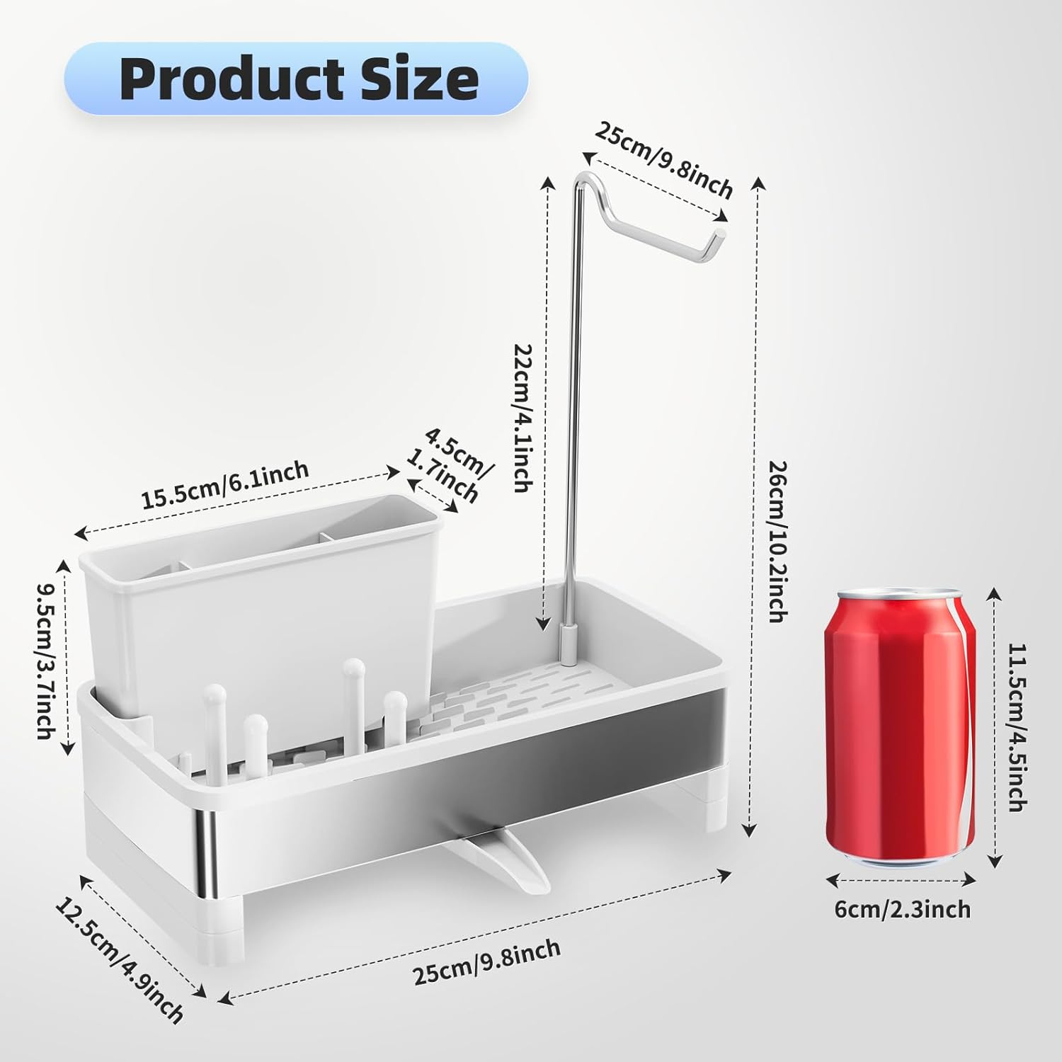 - 【Removable Brush Holder & Dish Cloth Hanger】It not only serves as a sink sponge holder, but also comes with a removable brush holder that can accommodate brushes of different sizes. It also features a towel rack that allows your dish towels to hang and dry easily. Our sink caddy allows you to organize and store kitchen cleaning supplies more efficiently, saving space in your kitchen.