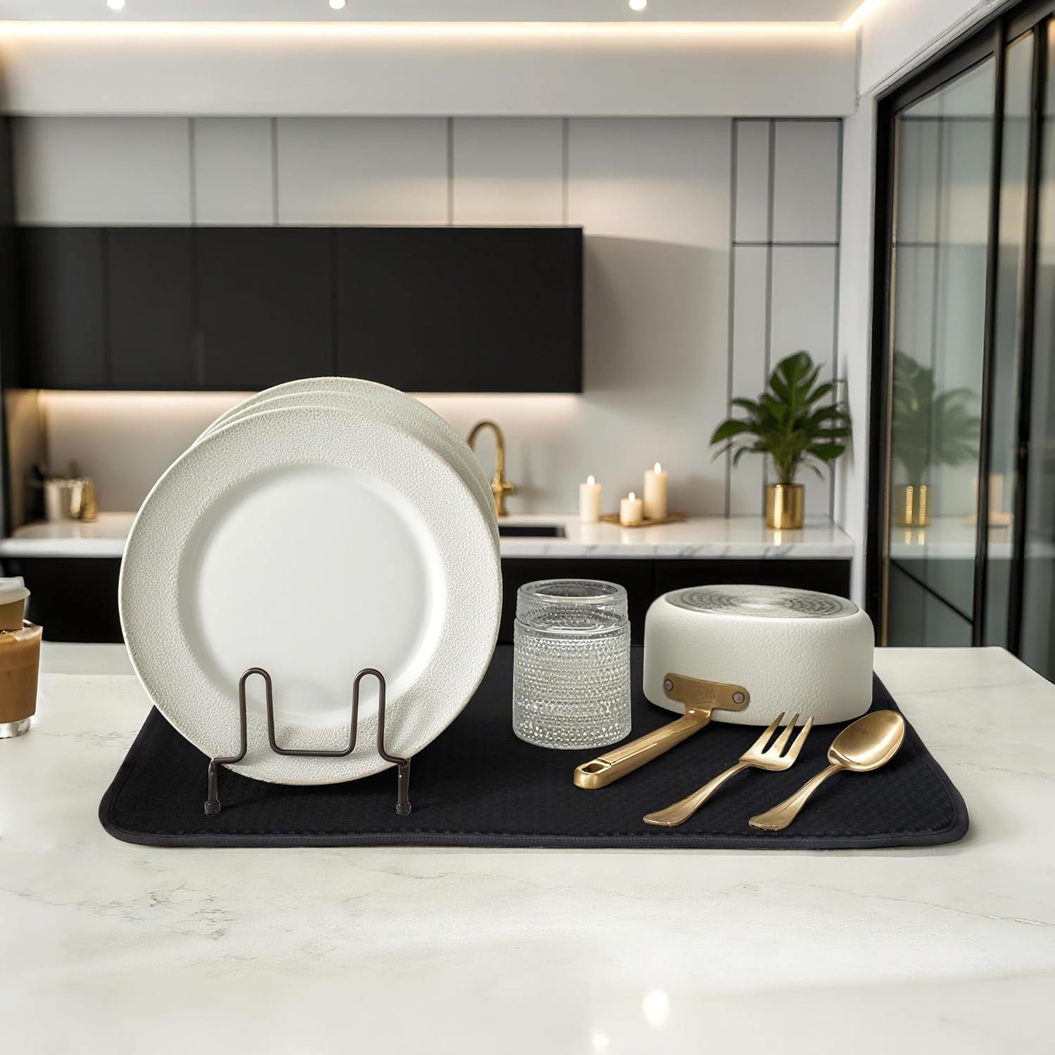 2-Pack Black Dish Drying Mat XL 17”x24”, Kitchen Drying Mat, Drying Matt Kitchen Counter, Dish Dryer Mat, Utensils, Pots & Pans – Dish Drying Pad, Dish Mats for Drying Dishes