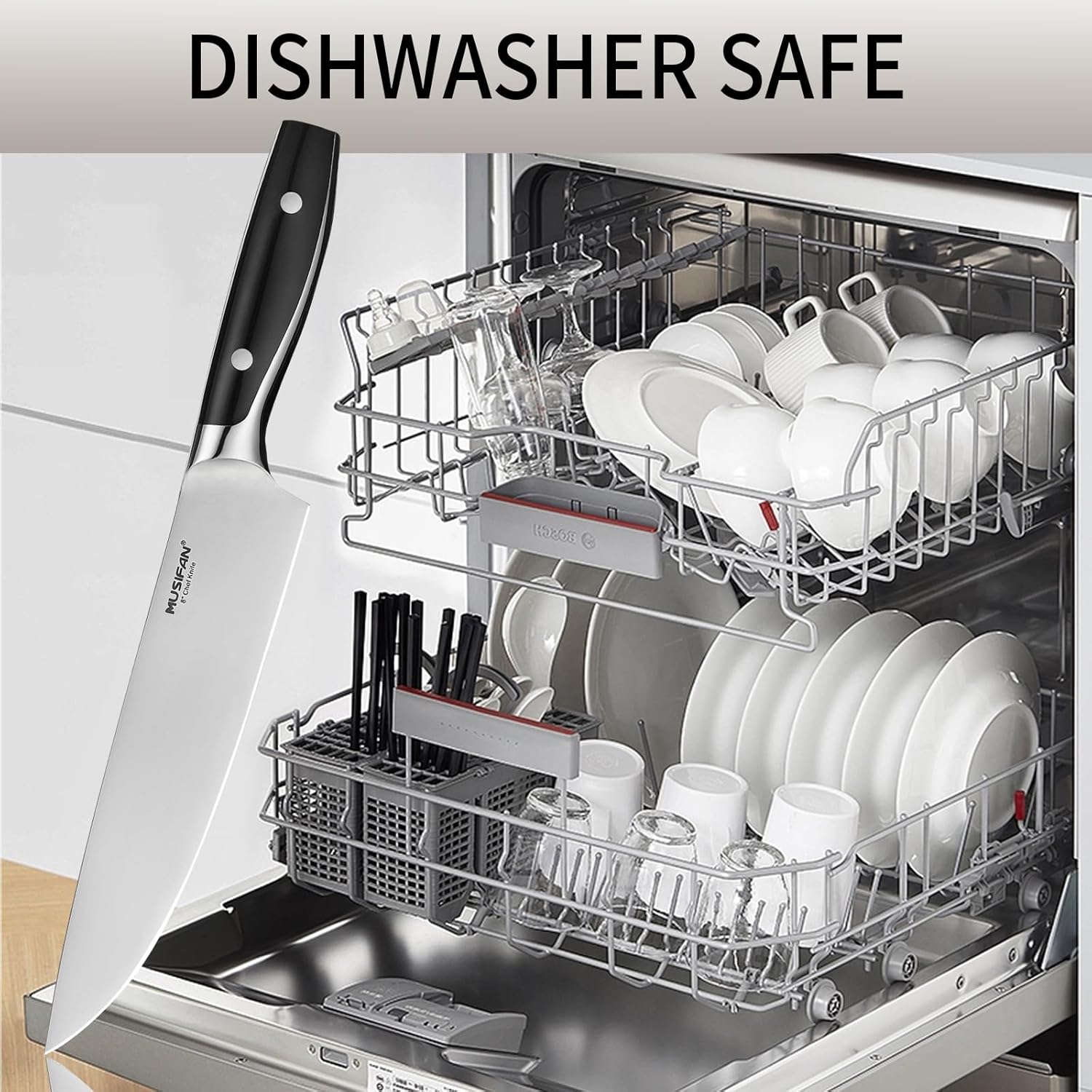 - 【DISHWASHER SAFE】 The rust-resistant 1.4116 steel construction makes this cutlery set completely dishwasher safe, easy and quick to operate, and dry the knife set after cleaning for easy storage, not taking up space .