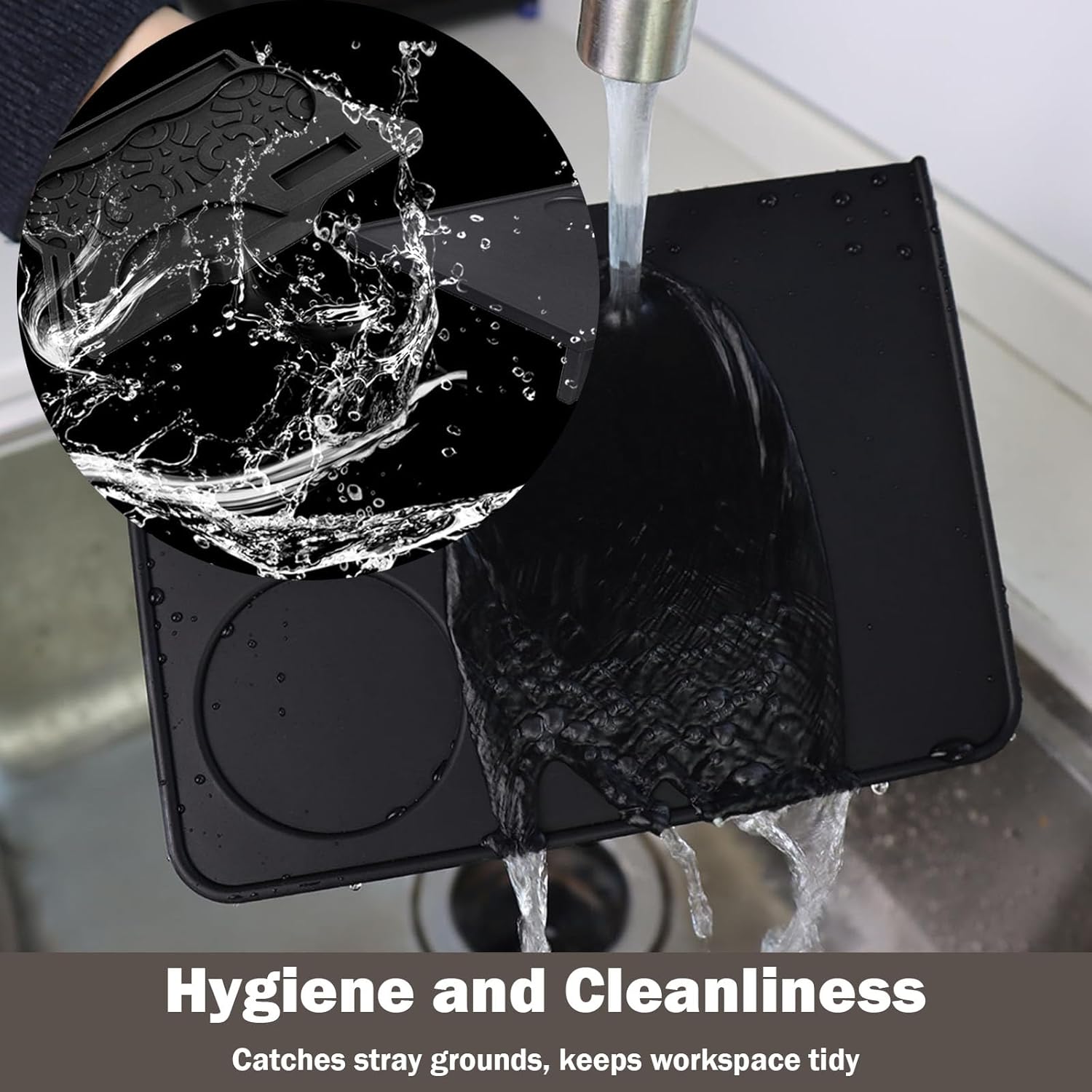 - [Non-Slip Stability]: Espresso matt for counter textured silicone base grips surfaces firmly, enhancing tamping precision and consistent espresso extraction.