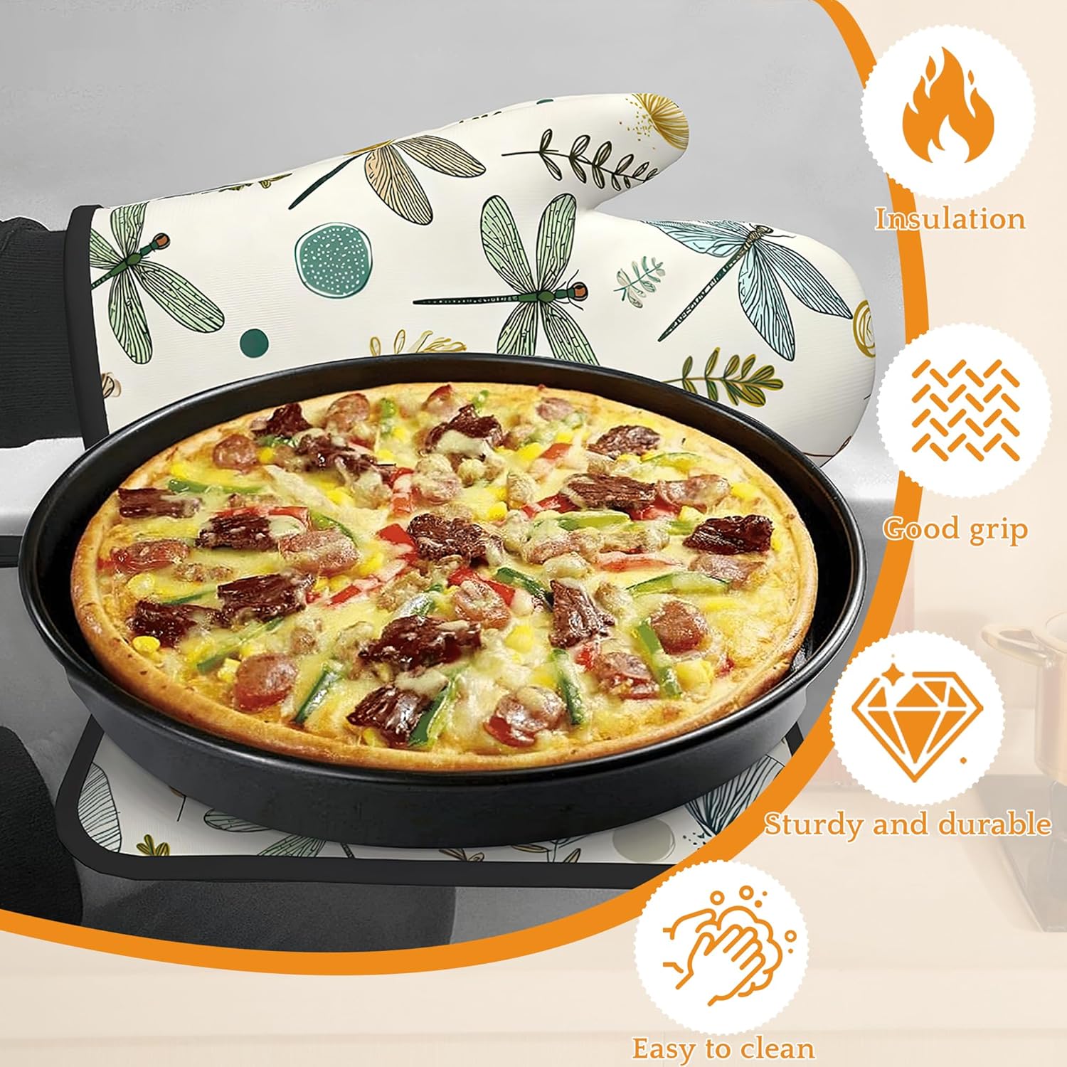 - 4-Piece Set: Includes 2 oven mitts and 2 heat-resistant pads, providing a practical and complete combination for your daily kitchen needs. Ideal for cooking, baking, grilling, and handling hot dishes.