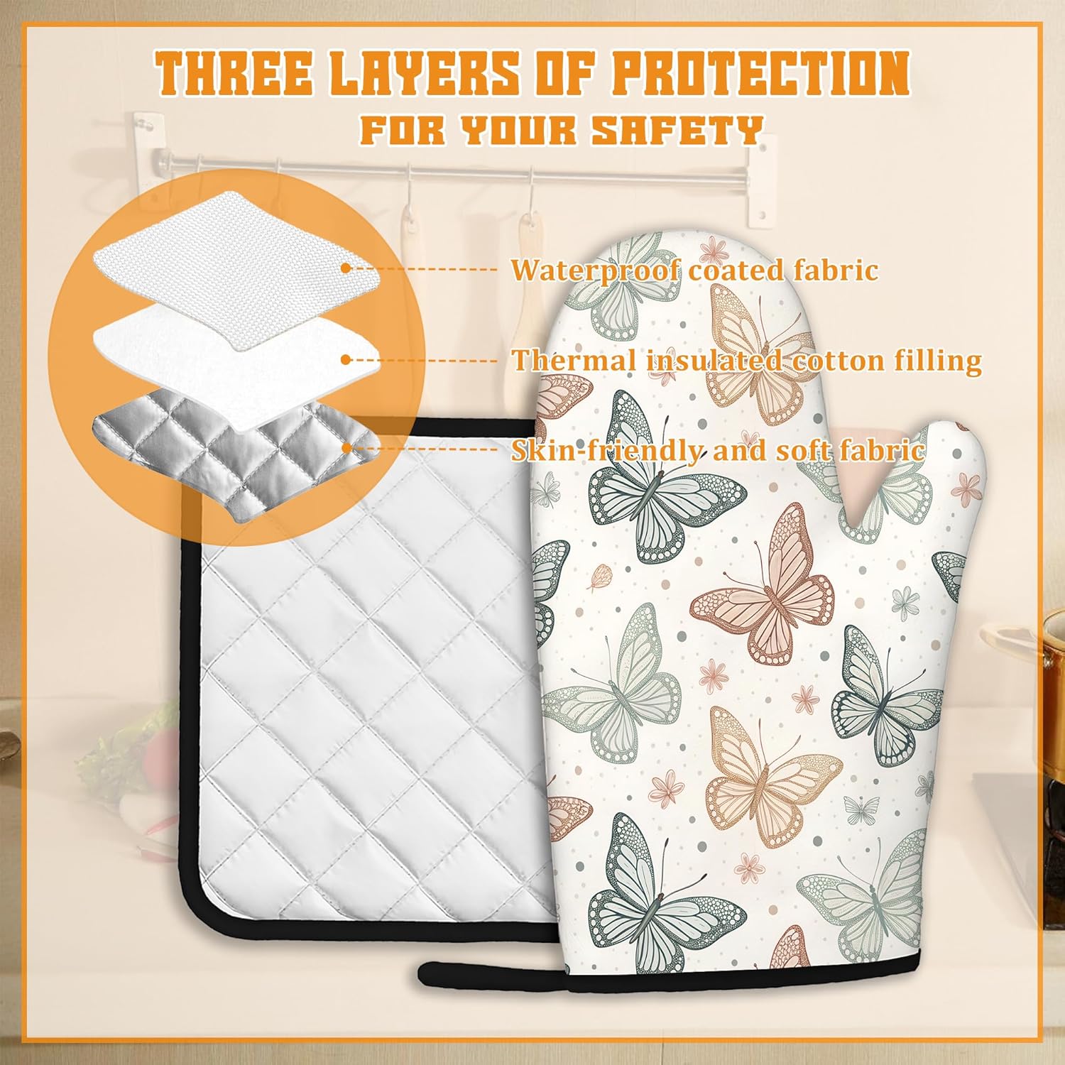 - Heat Resistant: Made from polyester and insulating cotton, these oven mitts and pot holders provide excellent heat resistance to effectively protect your hands from hot pots, pans, and baking trays. Cook with confidence and safety.