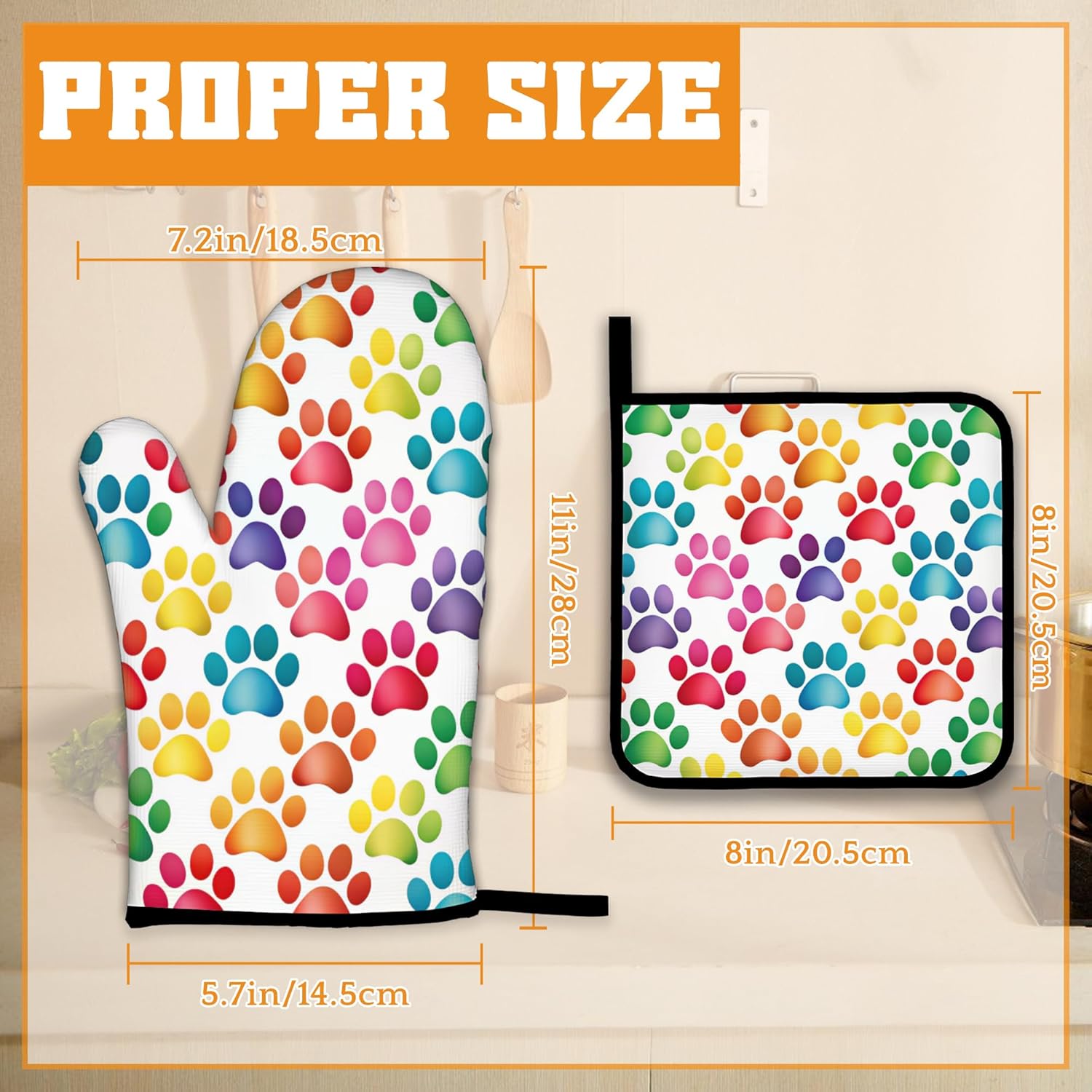 Cat Dog Paw Oven Mitts and Pot Holders Set,Rainbow Kitchen Decor Heat Resistant Non Slip Hot Pads and Oven Mitt for Chef Cooking Baking BBQ Mom Girl Gifts(4 Piece Set)
