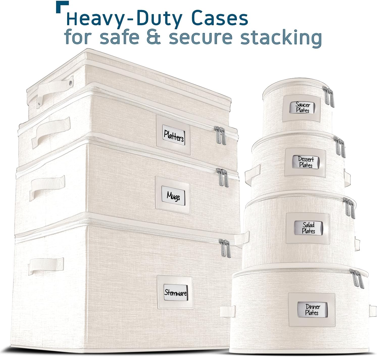 - Convenient and Stylish: Our dish storage protectors boast sturdy handles, zippered lids, and faux leather label slots for neat, elegant kitchen organization and storage.