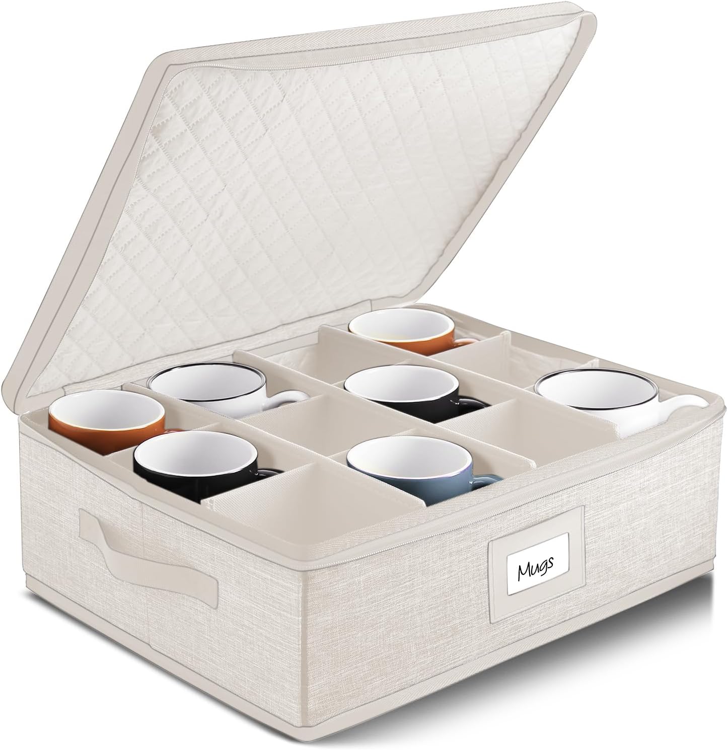 Hearth & Harbor Coffee Mug Storage, Quilted and Stackable Coffee Cup Storage Organizer for Service of 12, Mug Storage Box with Dividers, China Containers Hard Shell for Moving and Organization, Cream
