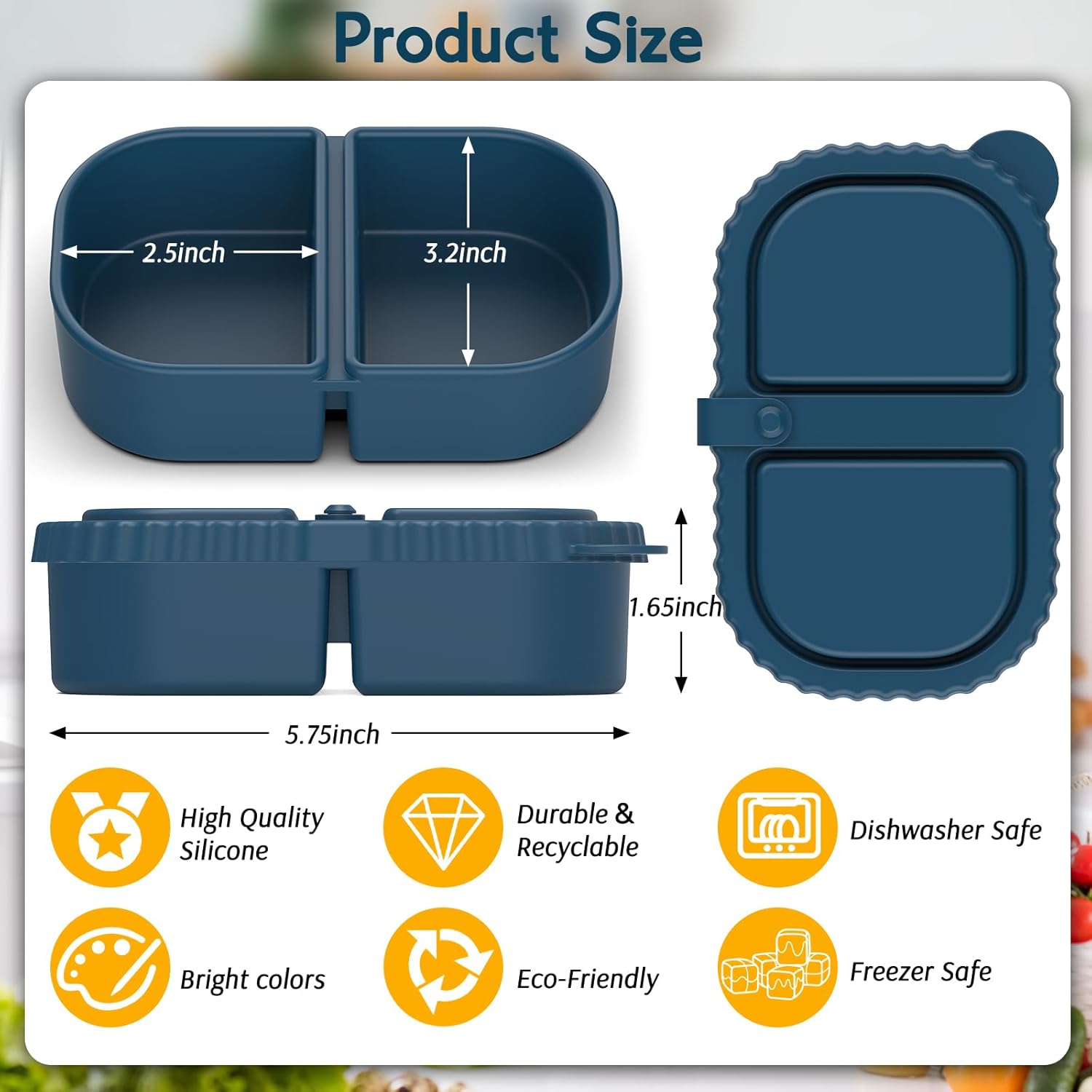 - Reusable Silicone Snack Containers: Our reusable snack containers are designed with durability and convenience in mind. Made from flexible yet sturdy material, they’re perfect for student and adults alike—whether you’re packing sauces, dips, yogurt, or bite-sized treats. They’re reusable and easy to clean—just rinse and reuse, reducing waste while keeping your snacks fresh and ready anytime
