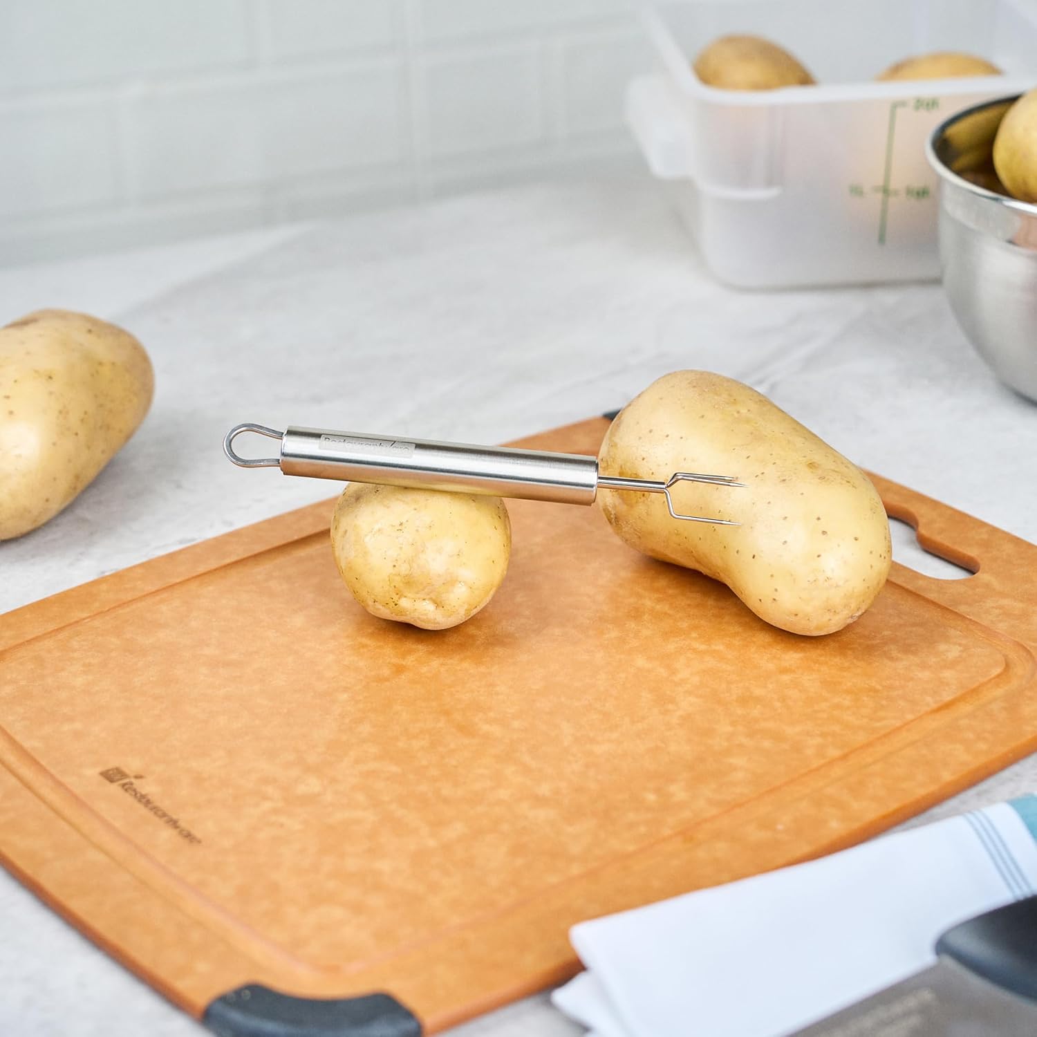 - EASY TO CLEAN & STORE: Simplify your cleanup routine! These stainless steel potato forks are dishwashable for efficient cleaning. Plus, the attached eyelet hook allows for handy storage.
