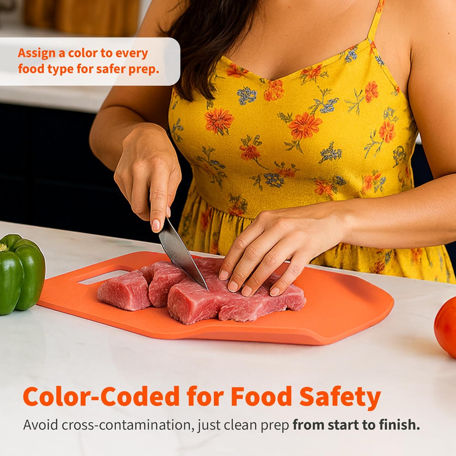 - LIGHTWEIGHT, DURABLE, AND DISHWASHER SAFE – These plastic cutting boards are dishwasher safe(top rack), color-coded, knife-friendly, and ideal for busy kitchens—perfect for quick weekday meals.