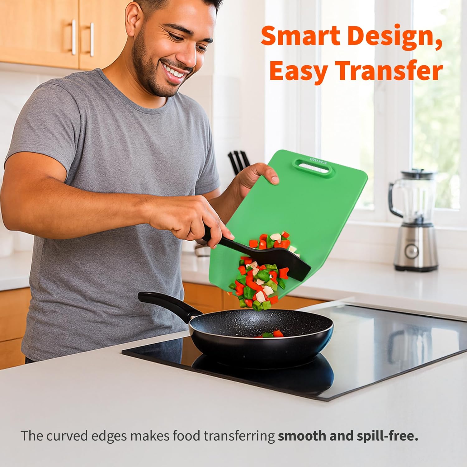 - LESS COUNTER MESS, FASTER CLEANUP – Curved edge helps transfer chopped ingredients into bowls or pans without spills. Practical plastic cutting board set for everyday cooking, from sofrito prep to family dinners.