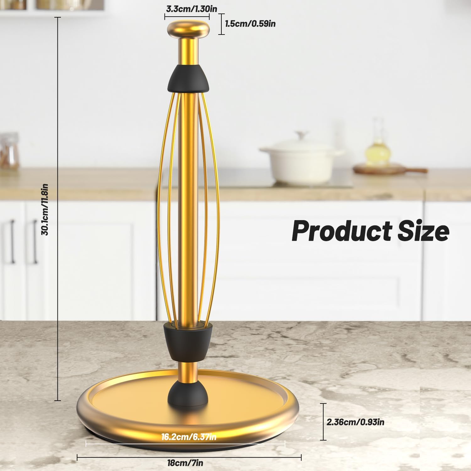VEHHE Gold Paper Towel Holder Countertop with Weighted Base, One-Handed Tear Kitchen Towel Holder with Damping Function and EVA Non-Slip Pad for Bathroom