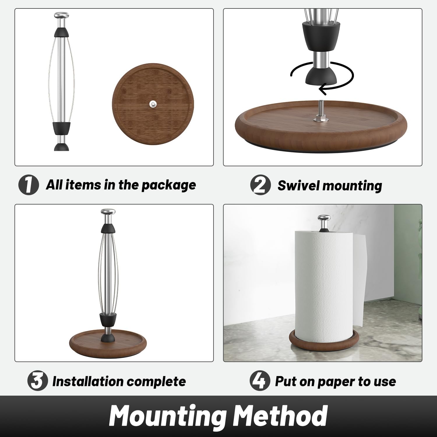 - 【SINGLE-HANDED OPERATION】The wooden paper towel holder is equipped with a damper and retainer, so with one hand pulling, the paper towel is instantly and neatly torn off, perfectly freeing the other hand. It is a necessity in kitchens, bathrooms and apartments!