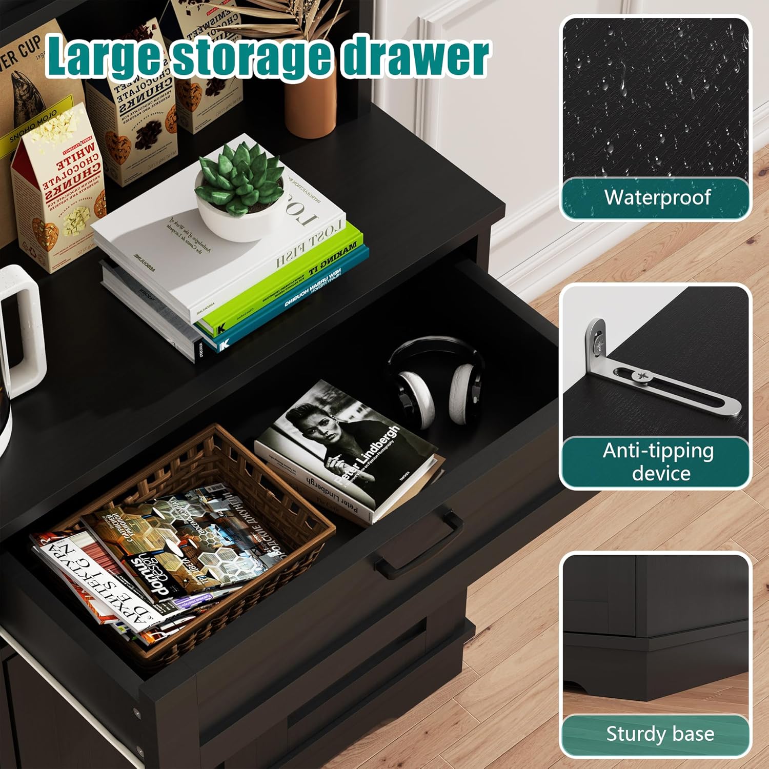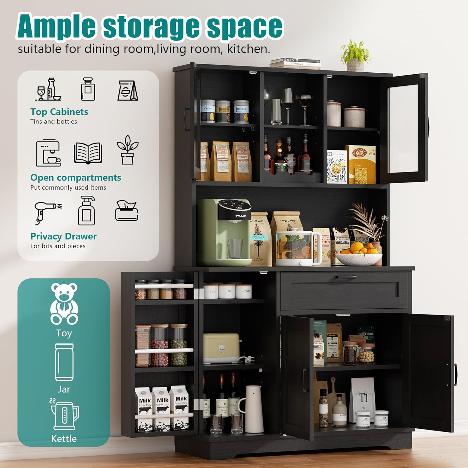 - Multi Scene: Except for being used as a food pantry cabinet in the kitchen, this hutch cabinet also works well as coffee bar, buffet cabinet in the dining room or as bar cabinet in the living room. It's the perfect pick that any family will love to fill their home.