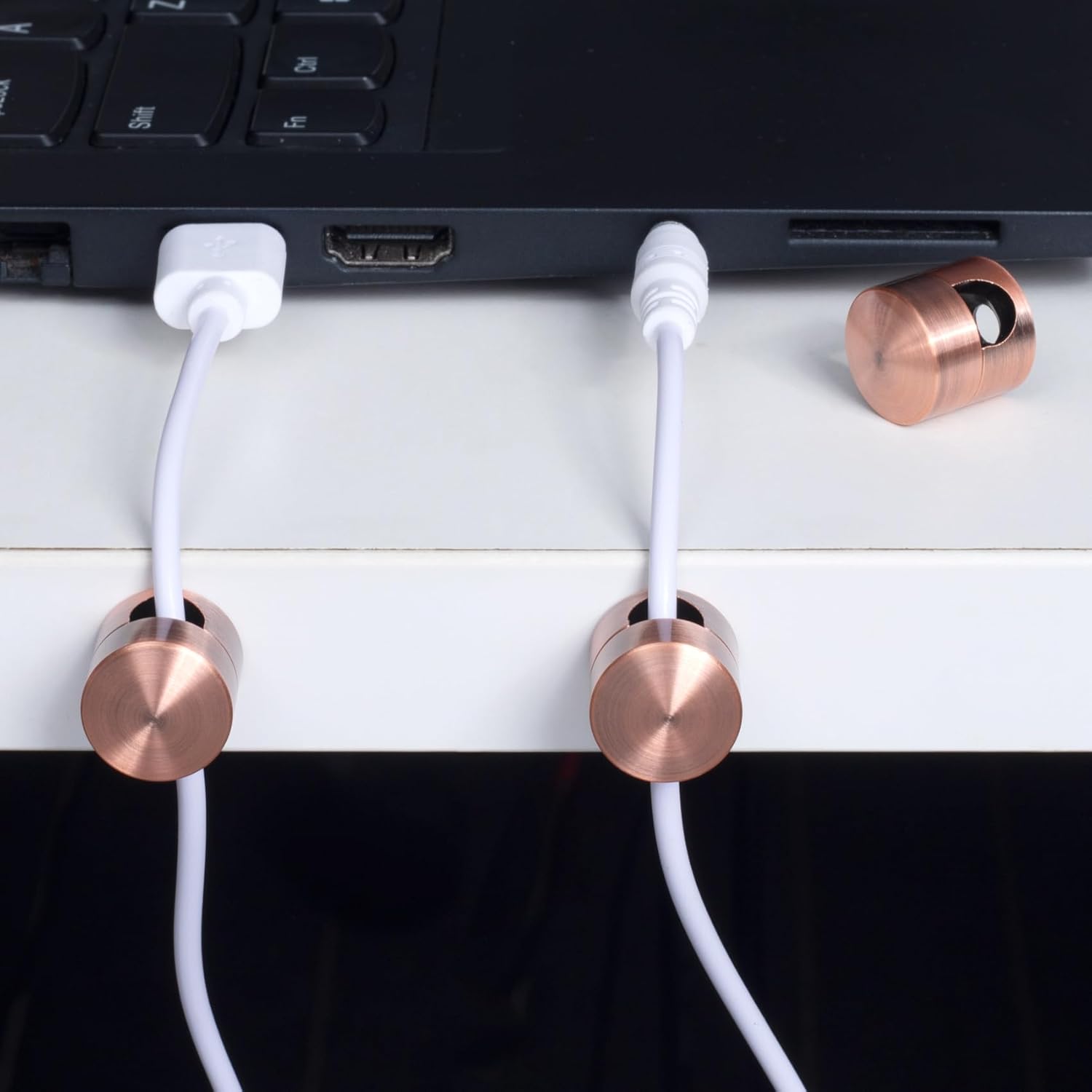 3 Sets Charger Holders for Cords, Red Bronze Color Adjustable Cable Anchor Holders, Adhesive Metal Cord Clips, Cable Management Wire Organizers for Desk, Office, Nightstand