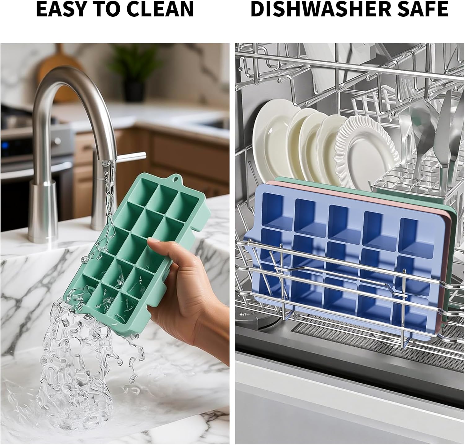 - Food Grade Silicone Ice Cube Tray: Our silicone ice cube trays are made of food grade silicone which is BPA free durable safety and odorless, they can directly contact food, for drink & food making and can be used for dishwasher, refrigerator, freezer and microwave