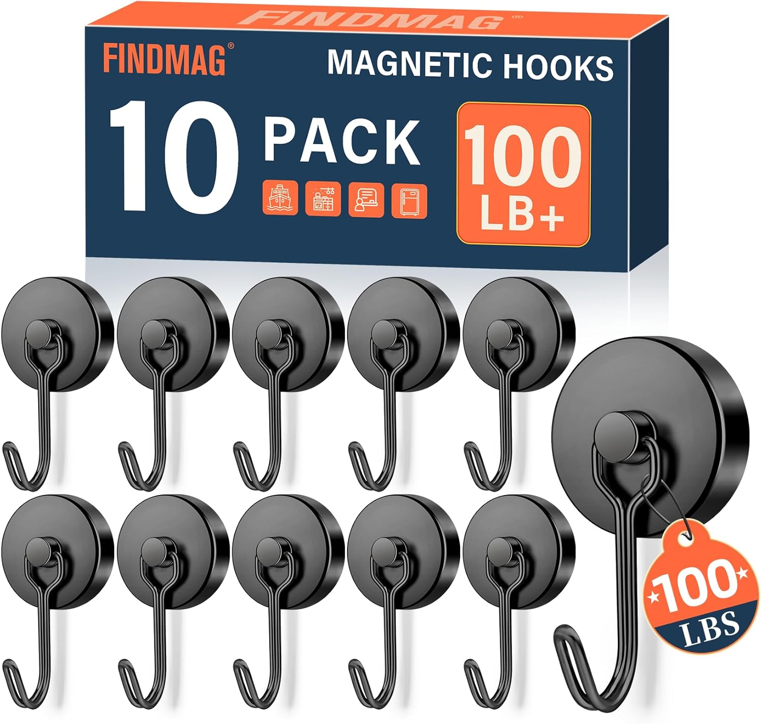 FINDMAG 100 LBS Magnetic Hooks, Super Strong Magnet with Hook for Cruise Cabins, Magnetic Hooks Heavy Duty for Classroom, Black Swivel Swing Hook for Hanging, Cruise, Locker Accessories, Refrigerator