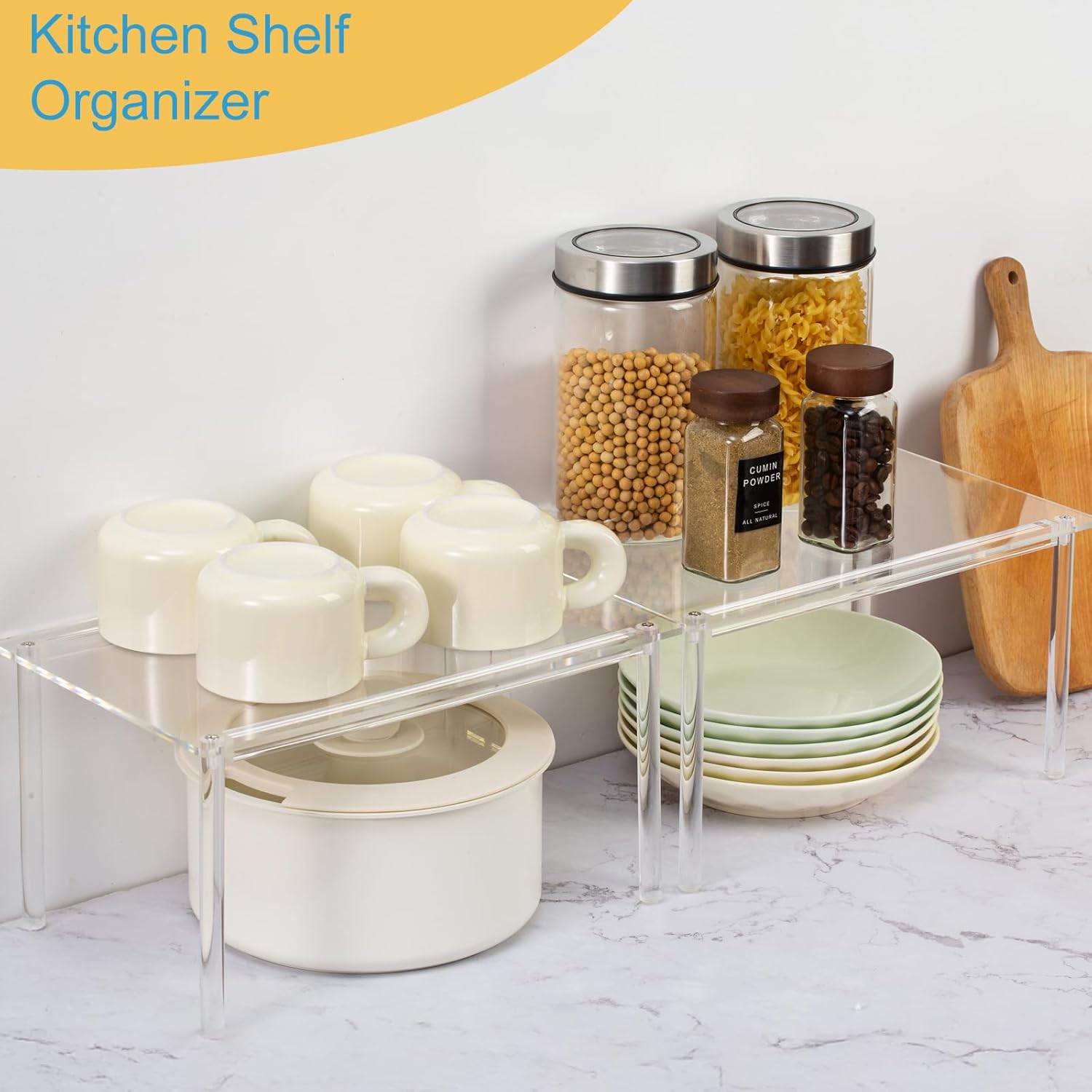 1 Pack Acrylic Cabinet Organizer, Kitchen Countertop Counter Organizer, Clear Spice Rack, Shelf Risers Cabinets for Bathroom, Desk, Dresser Cupboard Organizers and Storage