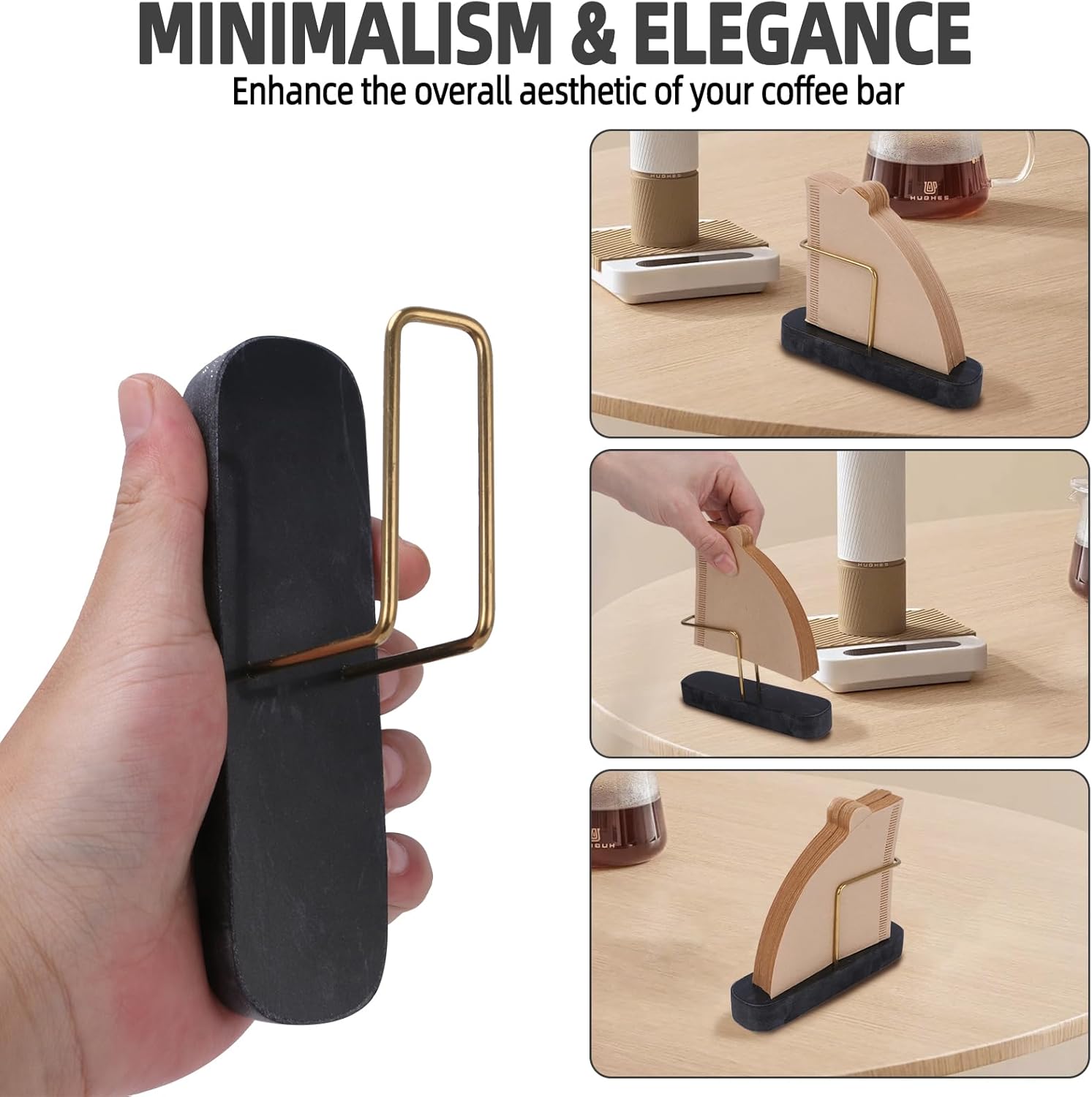 - 【High-Quality Materials】 Coffee Filter Holder is crafted from premium marble base and brass frame, combining aesthetics, sustainability, durability, practicality, convenience, and visual appeal.