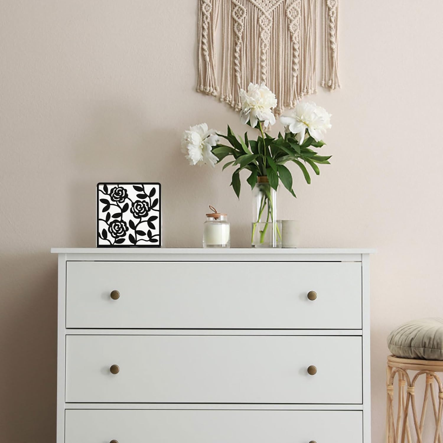 Resama Coffee Filter Paper Holder - Stylish Organizer with Rose Vine Pattern for Kitchen, Cafe, and Office - Decorative Storage Container in Black - Perfect for Home, Dining Room, and Outdoor Use