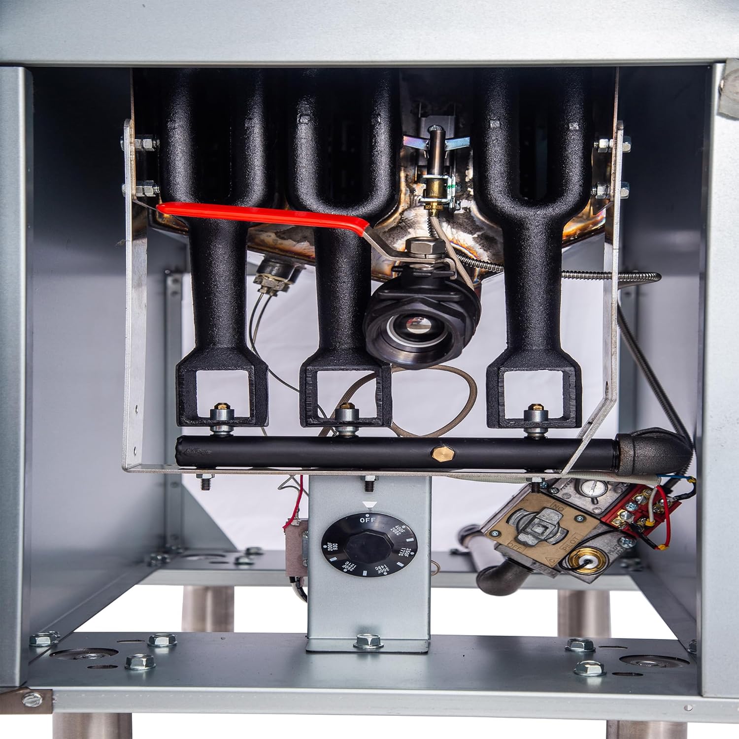 - Adjustable Temperature Control - The temperature of this fryer can be adjusted within the range of 200°F to 400°F (93°C to 205°C). Once the set temperature is reached, the thermostat automatically shuts off the gas to the burner. This feature allows you to set the optimal frying temperature for different types of food. The thermostat control system ensures excellent performance and quick temperature recovery, guaranteeing that your food is cooked to a perfect, crispy finish.