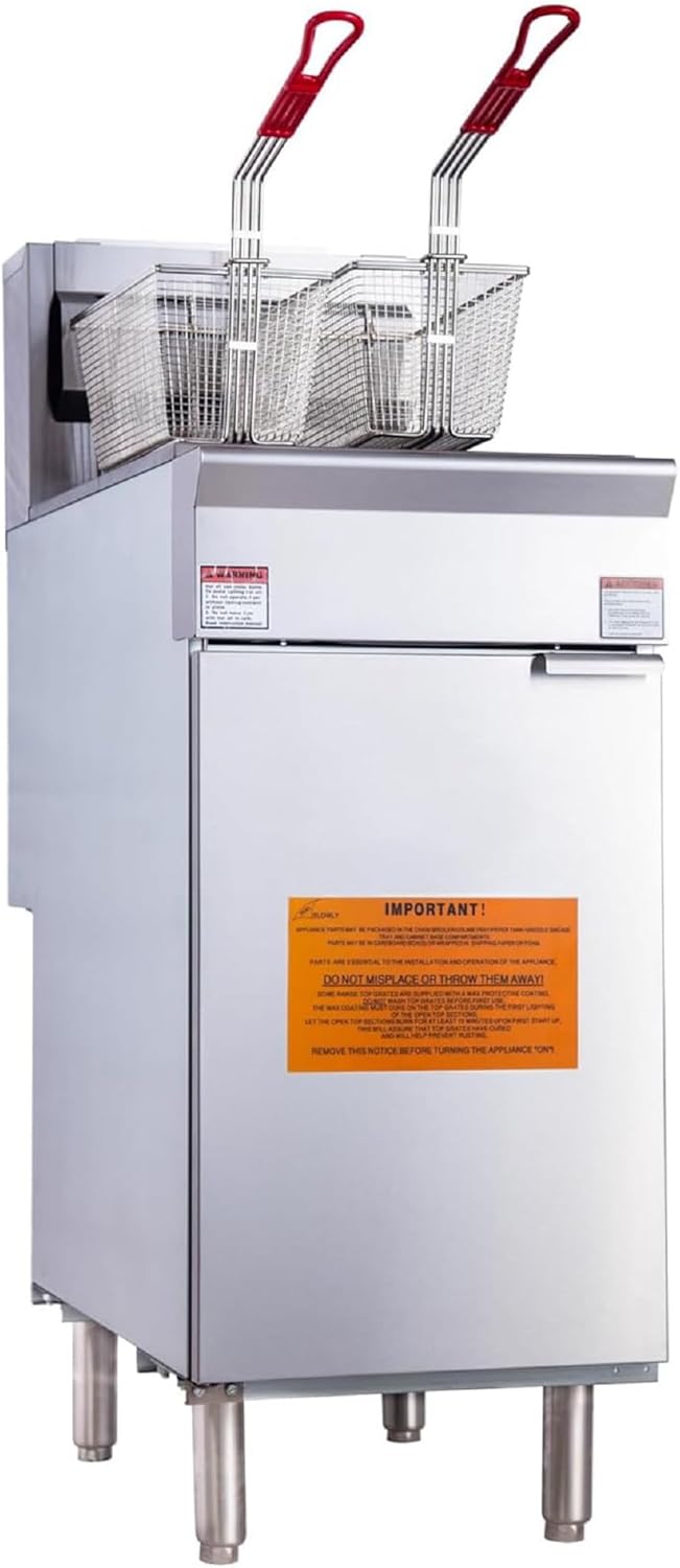 - Natural Gas Operation - This industrial - grade deep fryer requires a natural gas connection for operation. It is equipped with adjustable 6 - inch stainless - steel heavy - duty legs, enabling you to set the ideal working height. Comes with two nickel - plated fryer baskets and a handy fry basket hanger, which allows for easy drainage of excess oil and the ability to cook multiple foods simultaneously.