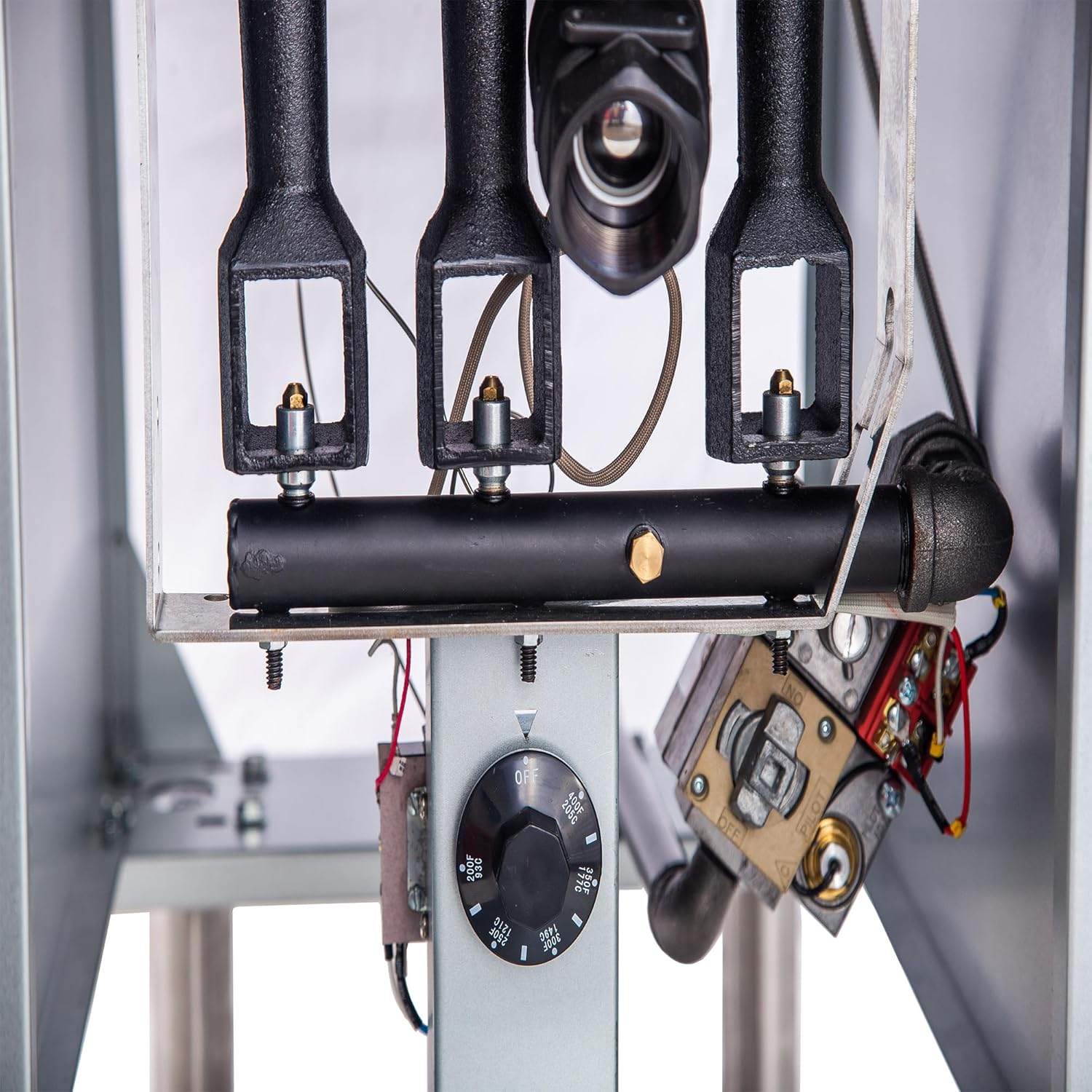 - Adjustable Temperature Control - The temperature of this fryer can be adjusted within the range of 200°F to 400°F (93°C to 205°C). Once the set temperature is reached, the thermostat automatically shuts off the gas to the burner. This feature allows you to set the optimal frying temperature for different types of food. The thermostat control system ensures excellent performance and quick temperature recovery, guaranteeing that your food is cooked to a perfect, crispy finish.