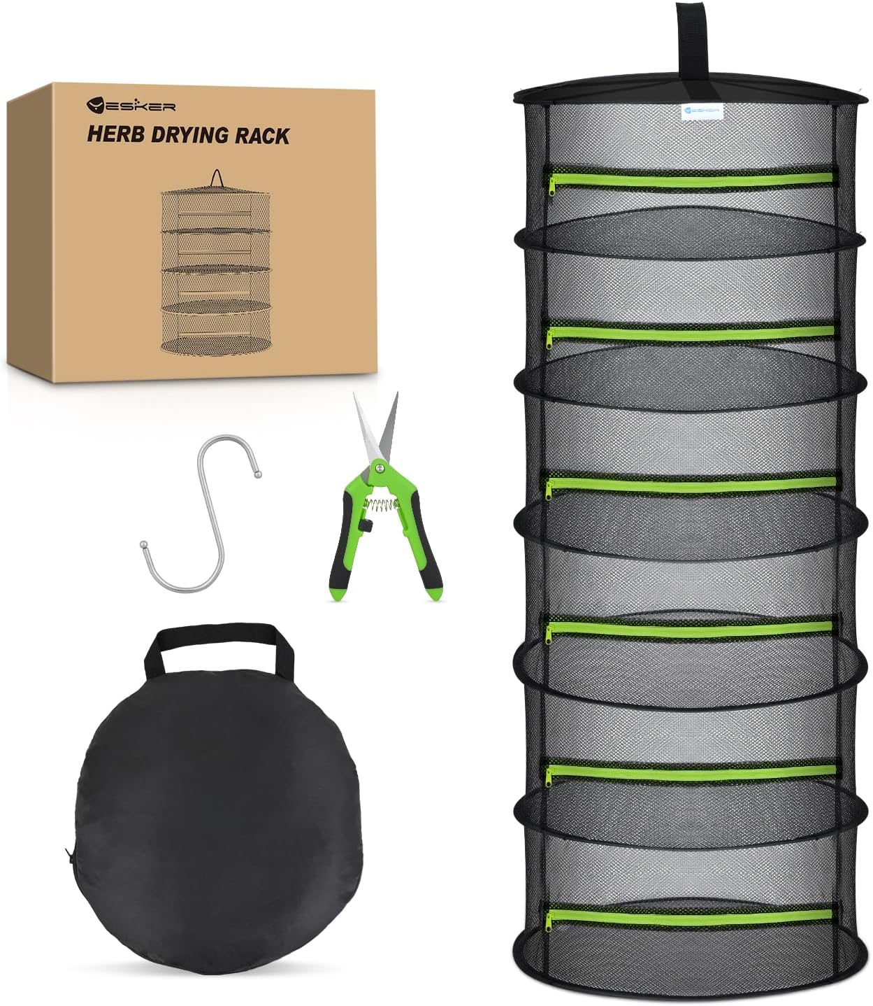 - PACKAGE INCLUDES: 1 x foldable 6-layer drying racks for herbs, 1 x S-shaped hook (easy hanging and fixing), 1 x pruning shears (green, for any other trimming, shaping or cutting needs), 1 x storage bag (easy to carry and store). Whether you're drying herbs, flowers, buds, or other plants, Yesker herb drying rack provides an ideal solution for gardeners, home growers, and DIY enthusiasts. If you encounter any problems during use, please feel free to contact us