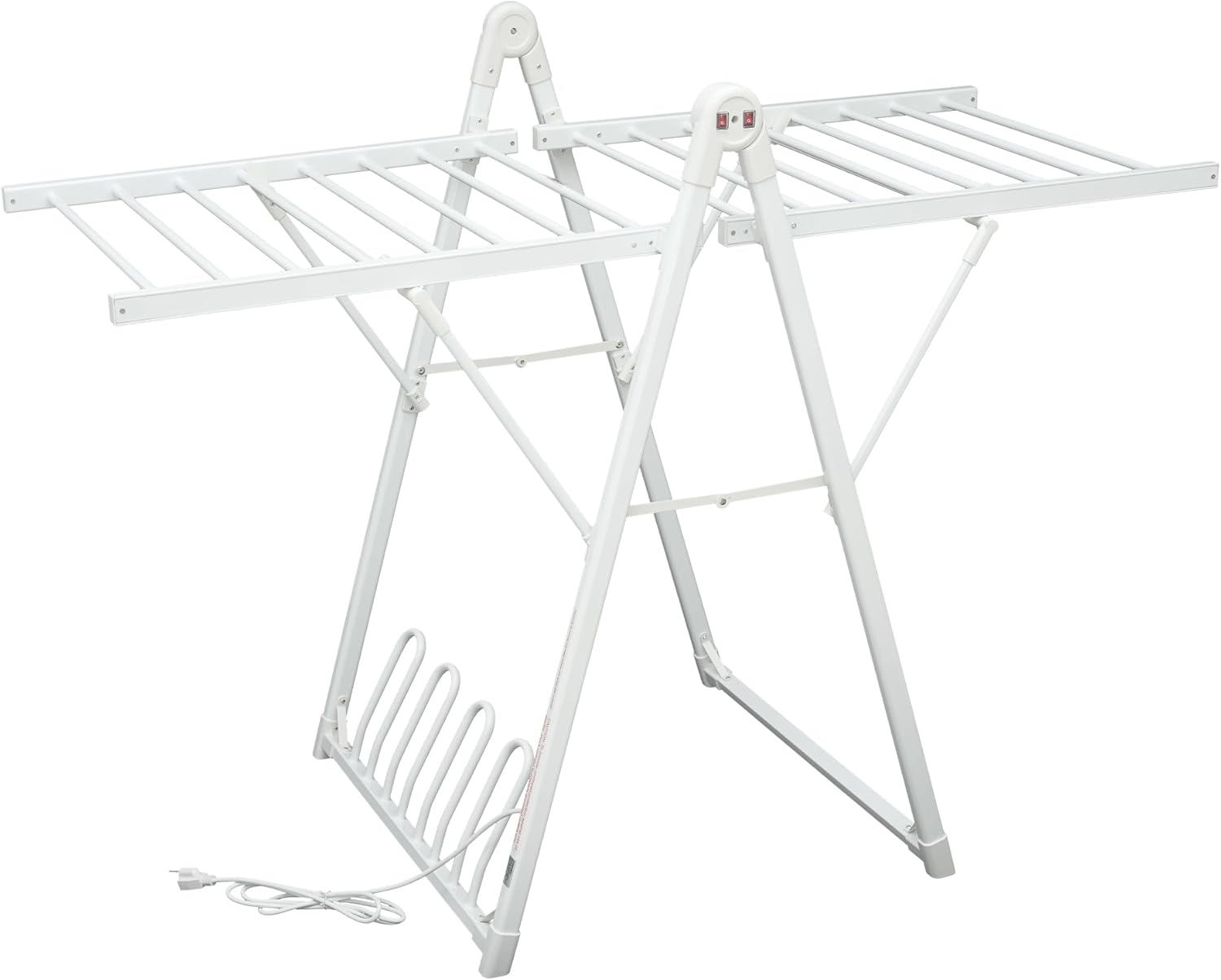 - 【No Installation&Quick Folding】 Enjoy instant use – simply unfold and plug in! No installation required. When not in use, easily fold it flat for compact storage, making this portable electric clothes airer ideal for apartments, RVs, or any space-conscious home.