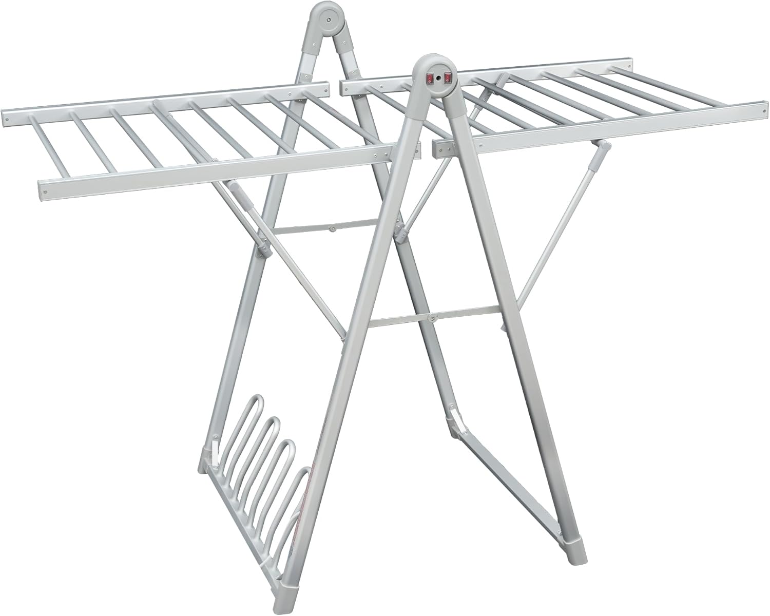 Electric Heating Clothes Drying Rack,Foldable Clothes Drying Rack,Suitable for Drying Clothes, Shoes and Socks.Plug & Play,Silvery Gray,Aluminum Alloy,One-Click Switch(39.37×52.56×25.98in)
