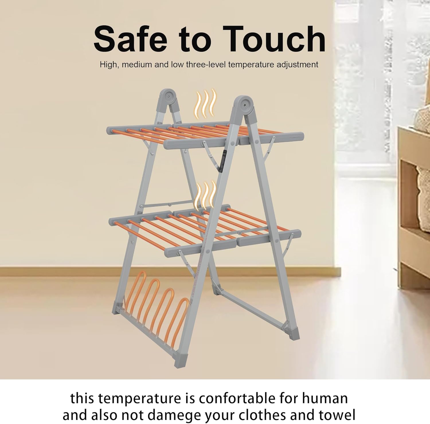 - 【3-Tier Large Capacity Heated Clothes Airer】Dries clothes, towels, and shoes simultaneously! This 2-in-1 electric drying rack replaces bulky dryers, traditional racks, and shoe dryers – perfect for small spaces.