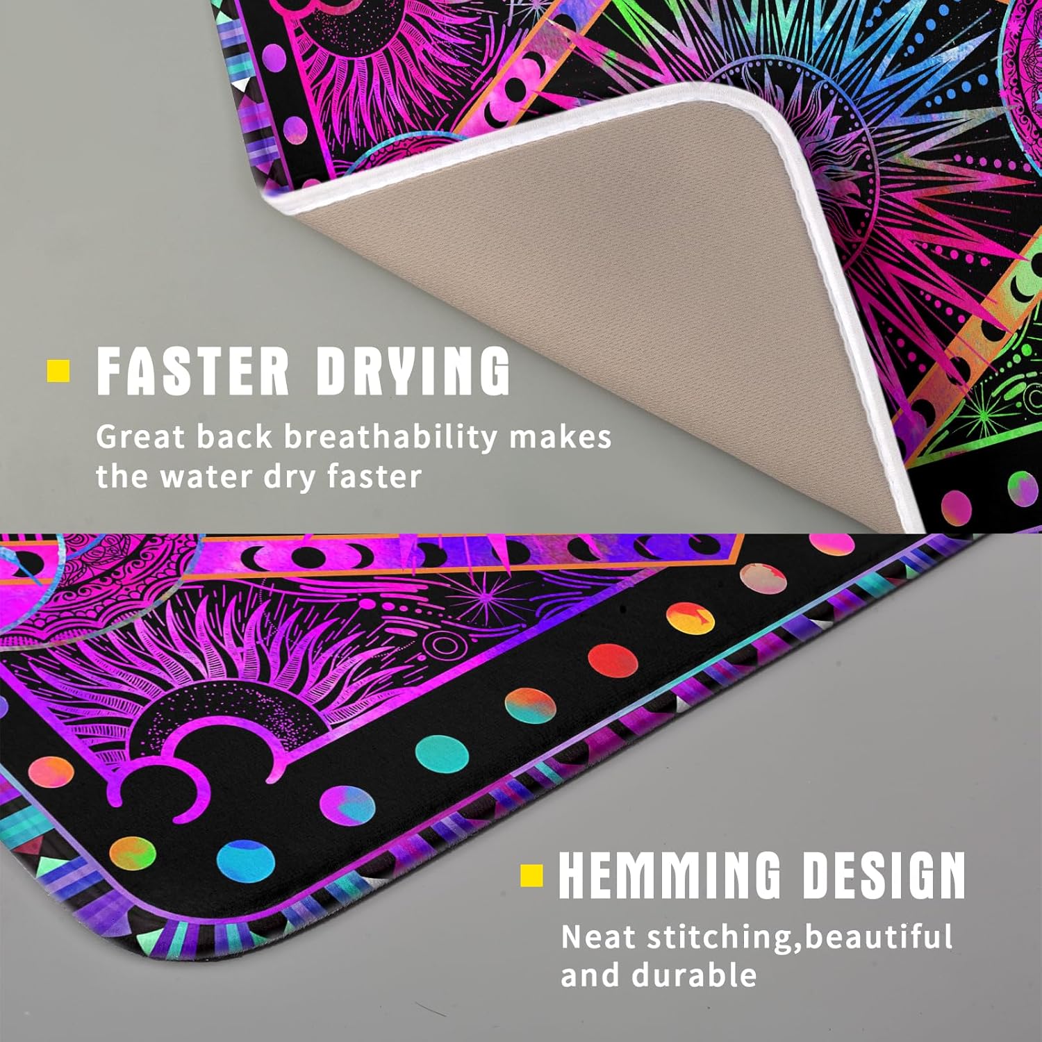 Purple Absorbent Dish Drying Mat Sun and Moon Microfiber Drying Pad for Kitchen Counter Decor Small